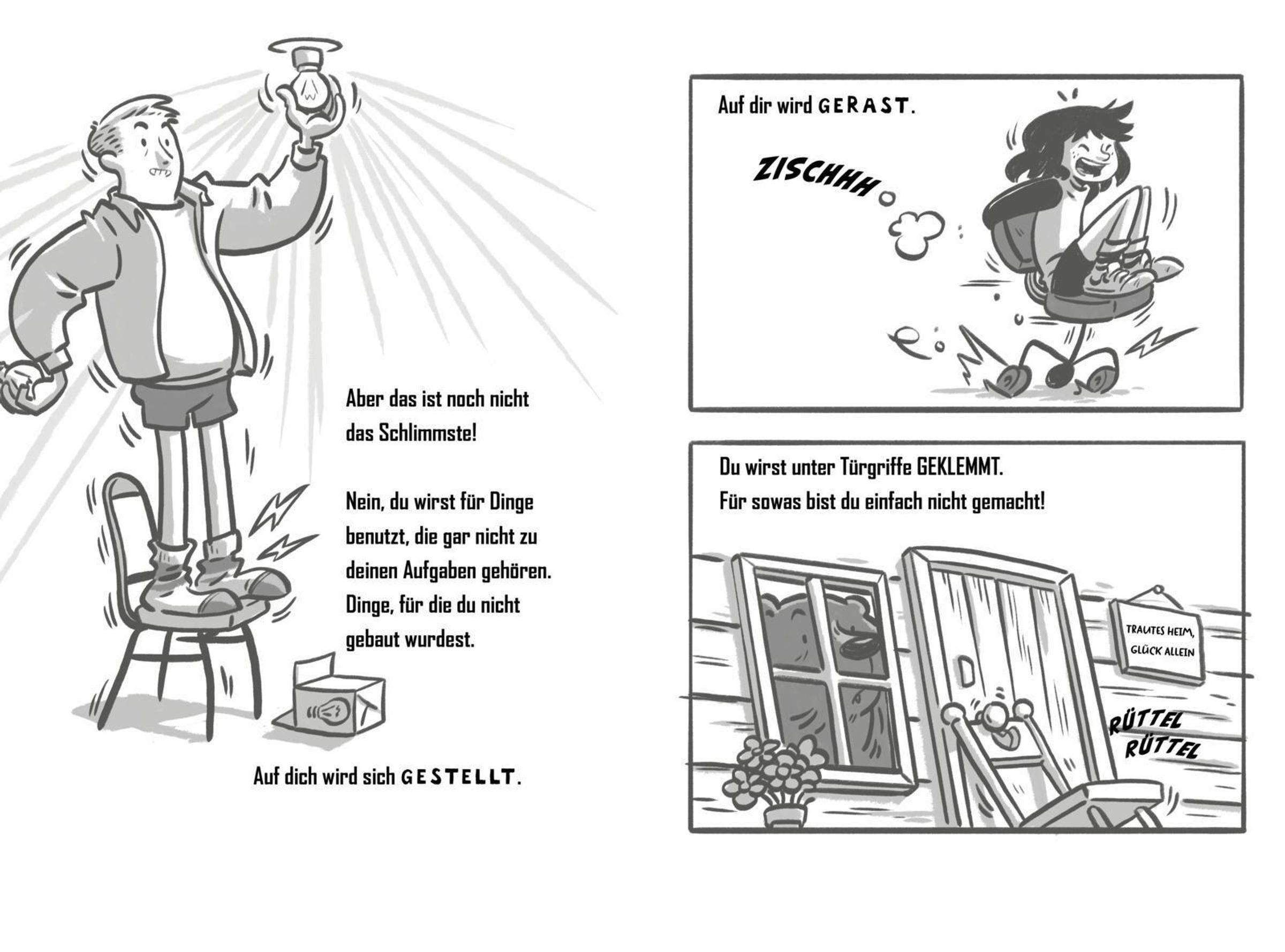 - Im Comic Stil mit witzigen schwarz-weiß Illustrationen