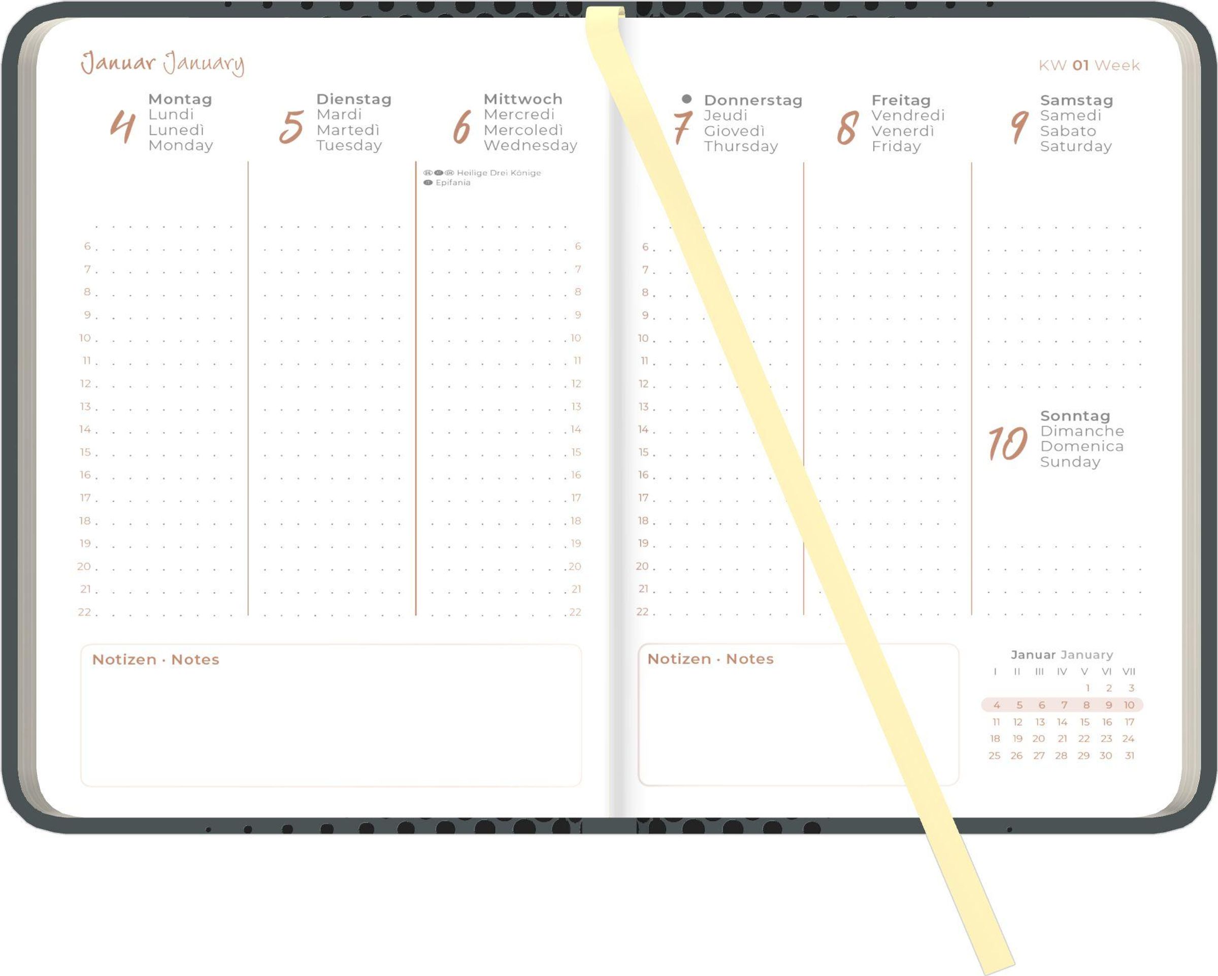 Mit dem Lady Journal Deluxe Anthrazit 2027 erhalten Sie einen eleganten, kompakten und funktionalen Kalender, der Ihnen hilft, Ihre Termine, Aufgaben und Ziele das ganze Jahr im Blick zu behalten.