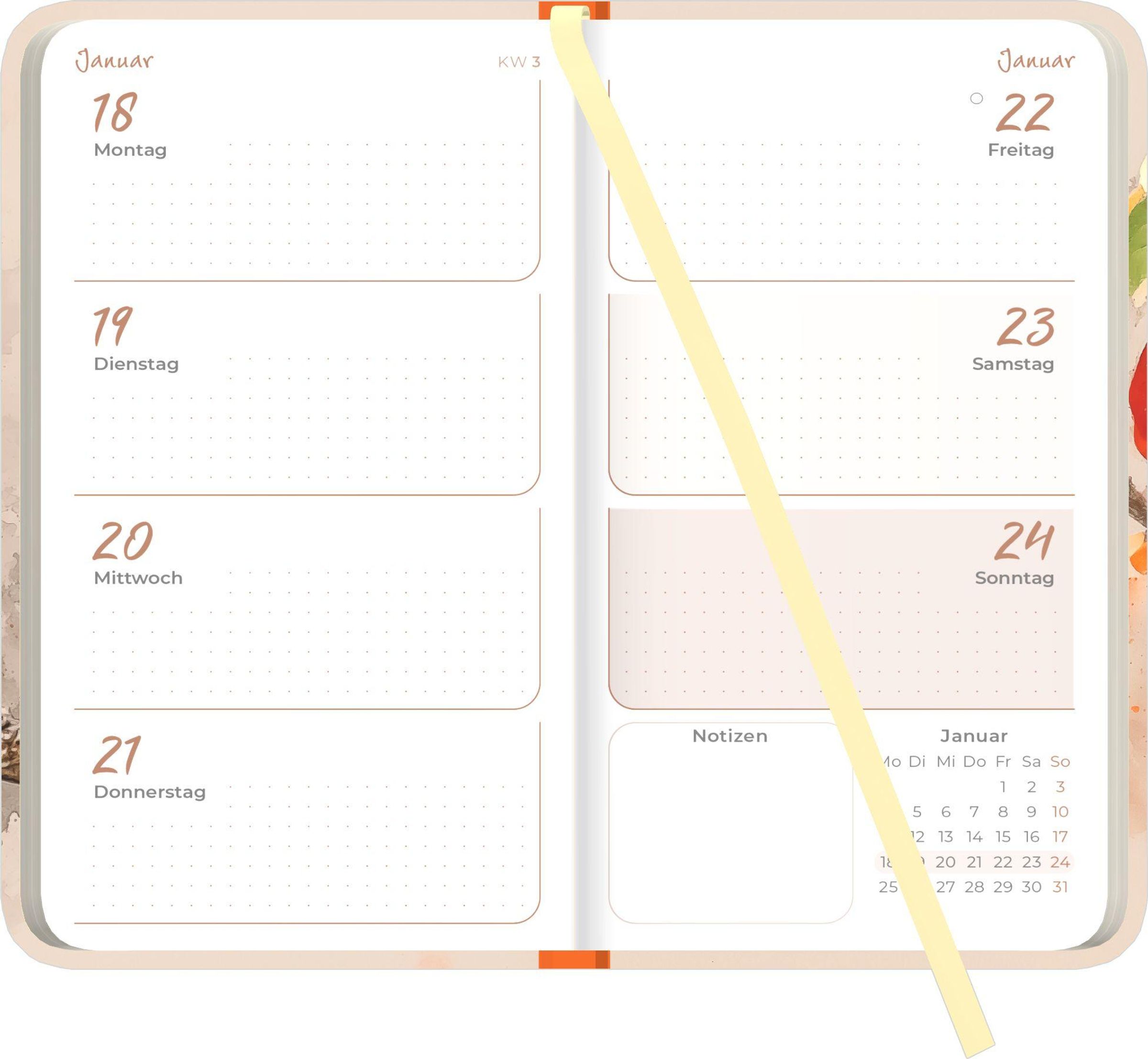 - Gebunden, Fadenbindung / Hardcover, (9 x 15,6) - 1 Woche 2 Seiten