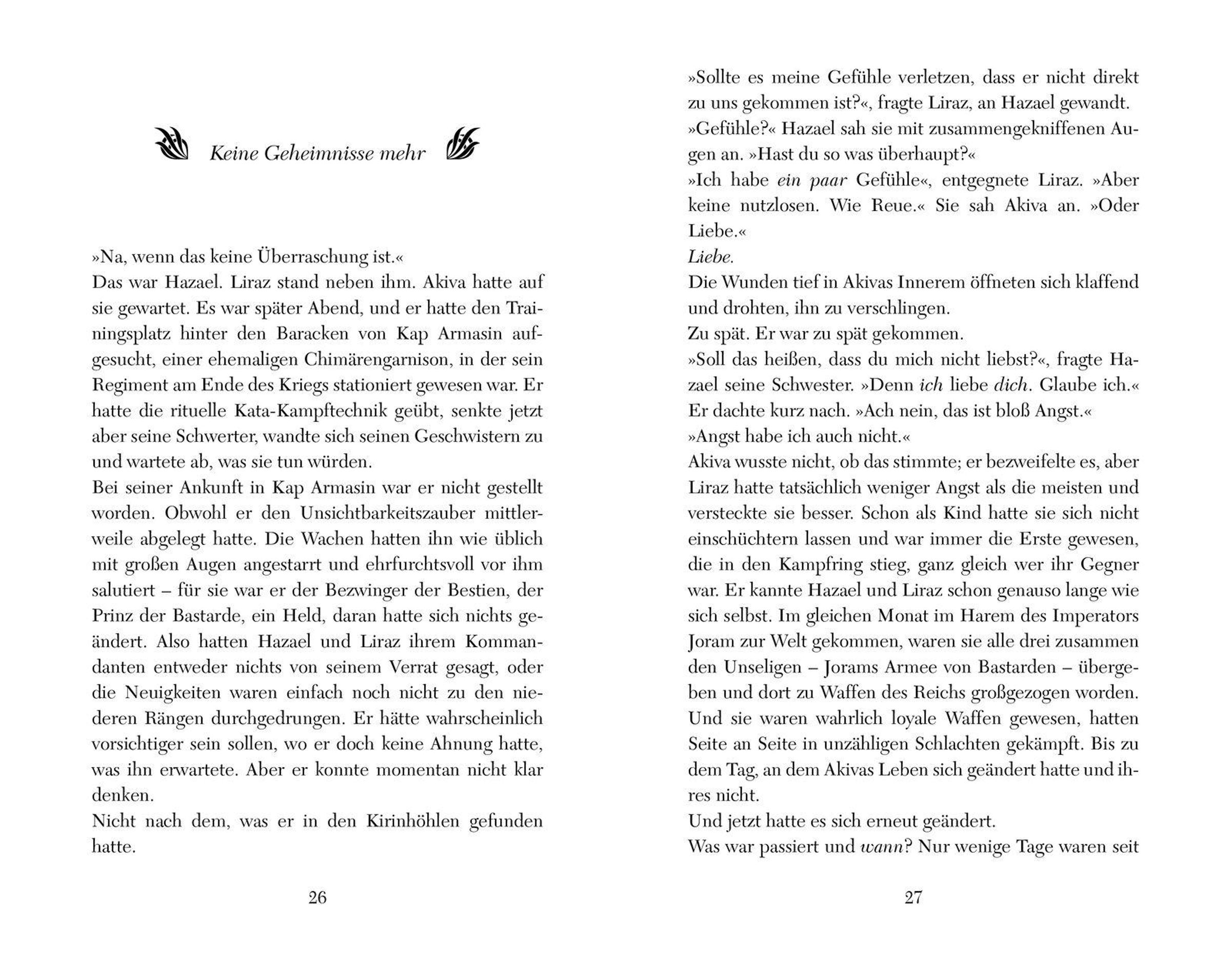 Karou wird von Verrat und Trauer gequält. Denn ihre große Liebe, der Seraphim Akiva, ist für den Tod ihrer Familie verantwortlich. Jetzt hat Karou nur noch ein Ziel: den jahrtausendealten Krieg zwischen den Chimären, zu denen sie selbst gehört, und den Seraphim zu beenden. Gemeinsam mit ihrem einstigen Feind Thiago - dem Weißen Wolf - zieht Karou sich in die Wüste Marokkos zurück, um dort eine neue Armee zu bilden. Unterdessen ringt Akiva mit seiner Schuld und plant einen gefährlichen Verrat, um seine Taten zu sühnen. Werden Karou und Akiva wieder zueinander finden und dabei die Welt verändern?