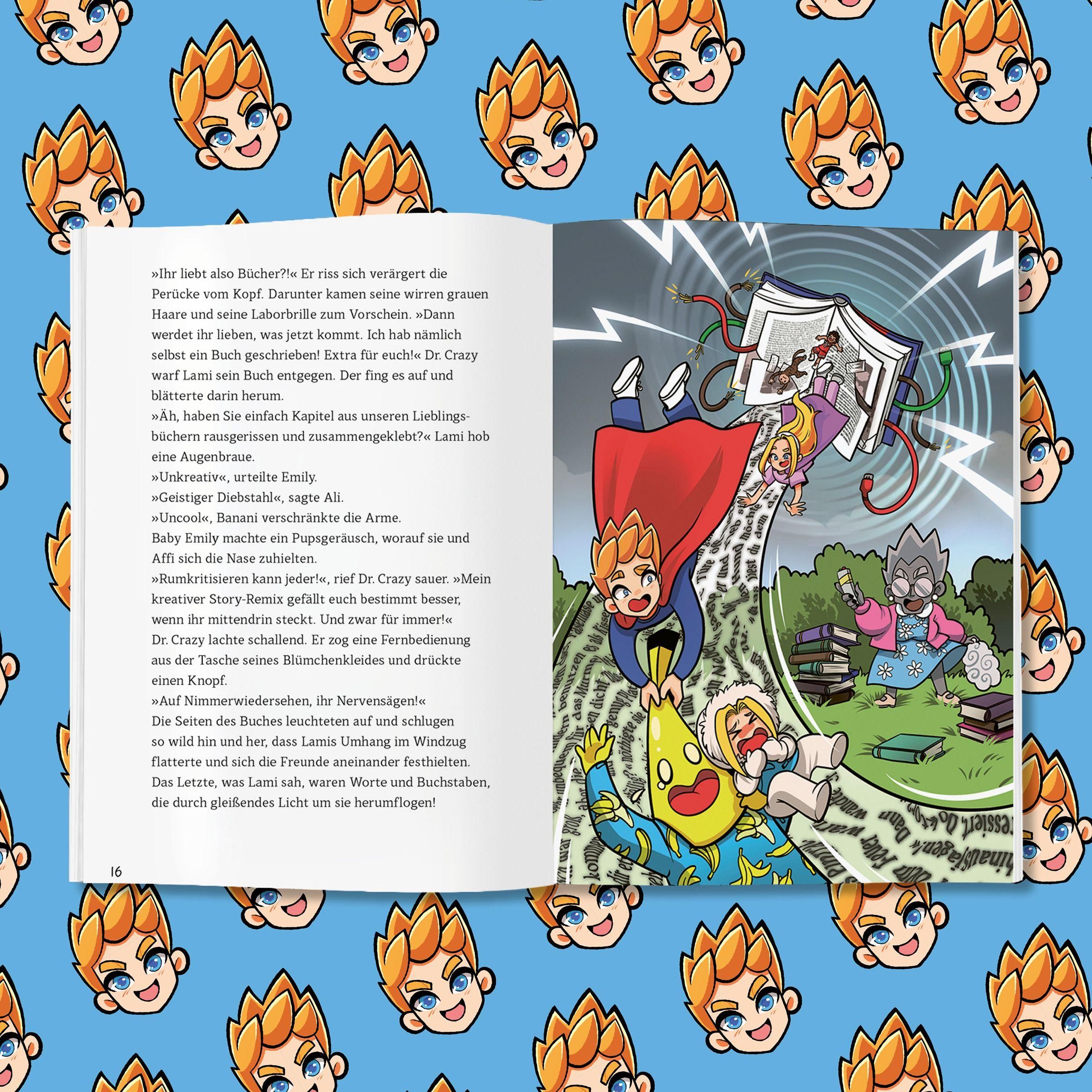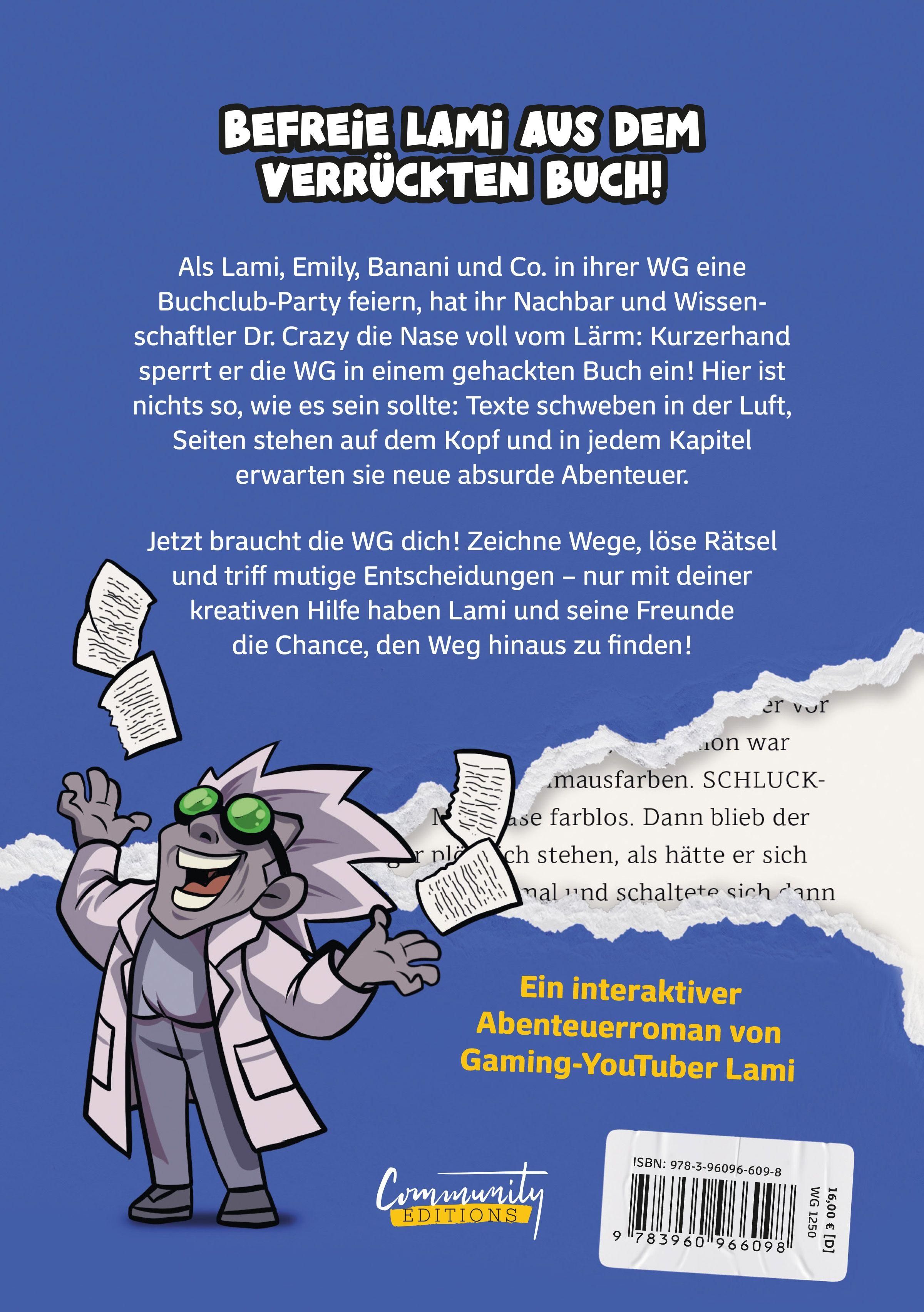 Ein gehacktes Buch, in dem Straßen schmelzen, Wörter explodieren und plötzlich alles auf dem Kopf steht - willkommen in Lamis verrücktem Abenteuer! Lami, Emily, Banani und Co. sind gefangen: Dr. Crazy hat das Buch gehackt! Auf dem Weg hinaus entdecken sie eine absurde Welt nach der anderen. Zeichne Wege, löse Rätsel und triff Entscheidungen - nur durch deine kreative Kraft haben Lami und seine Freund*innen eine Chance, sich aus dem Buch zu befreien!