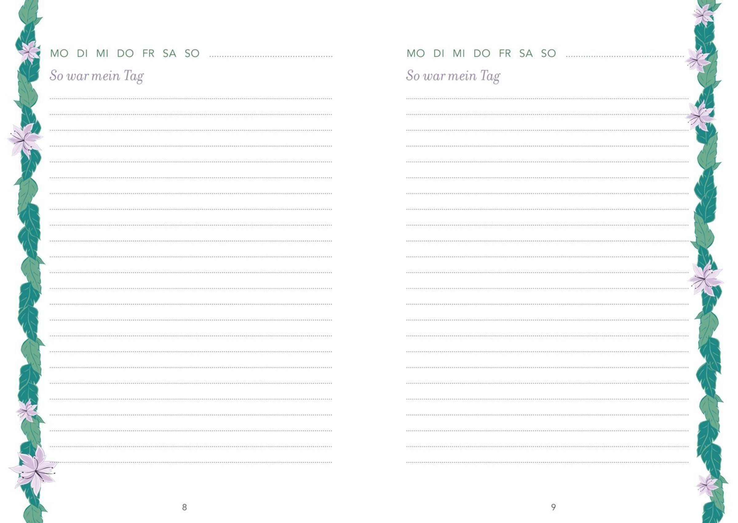 - Freie Tagebuchseitenfür ausführlichere Gedanken.