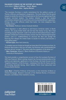 The book provides context and background for the Louisiana Purchase and examines the role of key actors and companies, focusing particularly on the ¿forgotten financiers¿ of the Purchase ¿ individuals from the US, France and the UK including Alexander Baring, Albert Gallatin, Pierre Cesar Labouchere and Francois Barbe-Marbois. Based on extensive, original archival research, the chapters will illuminate the role played by these individuals in bringing about financial innovation and facilitating a major transaction that doubled the size of the original United States and helped set the country on a path to global power. The book will be a valuable resource for historians of Europe and America, particularly those with interests in economic and financial history, as well as banking and finance scholars who are interested in the emergence of large-scale international finance in the 19th century.