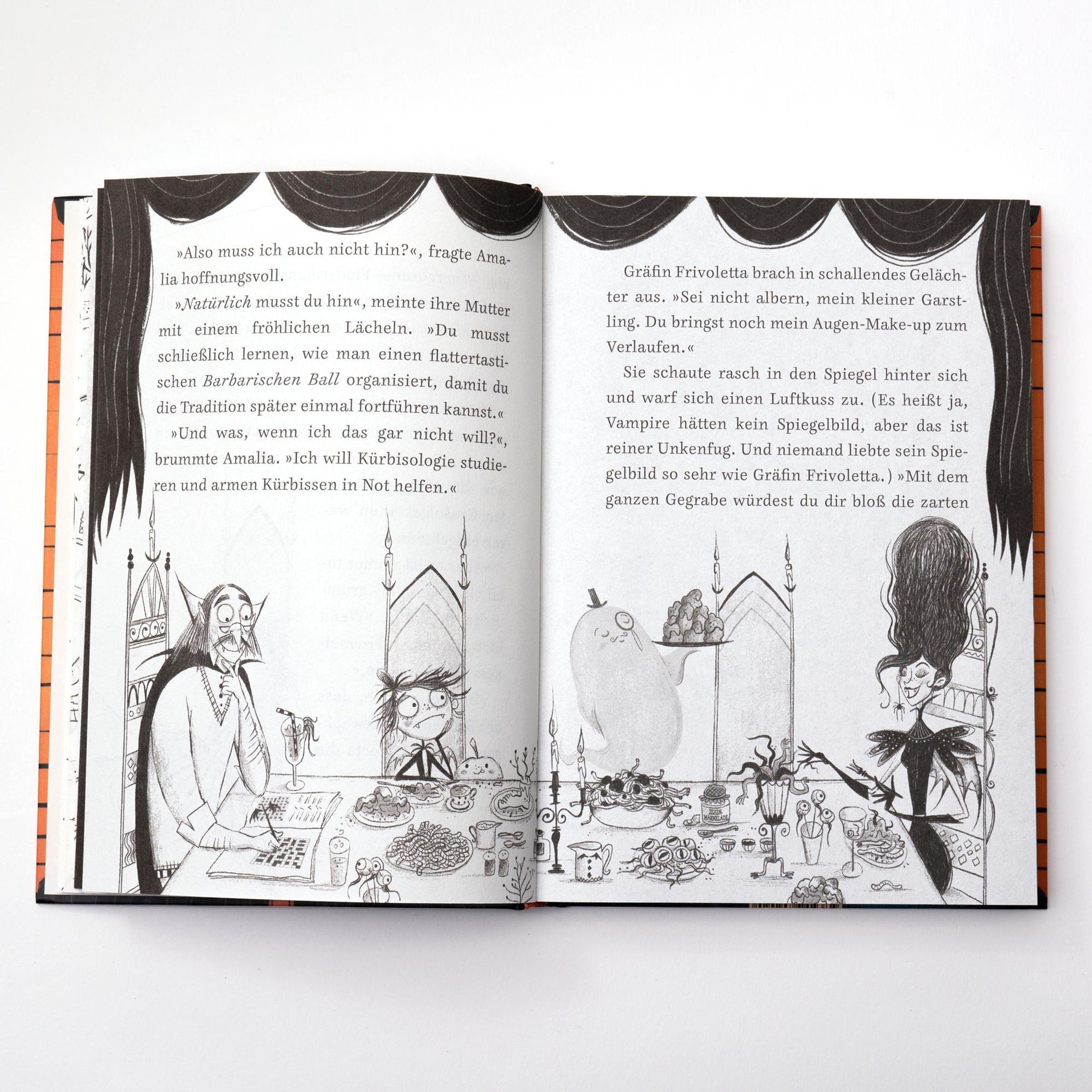 Amalia ist ein ganz normales Vampirmädchen mit kleinen Fangzähnen und zwei monster-guten Freunden. Ihre Eltern wollen wie jedes Jahr ein großes Fest feiern, und dieses Mal ist sogar noch ein anderer Vampirjunge eingeladen! Doch Prinz Marillo stellt alles auf den Kopf! Gemeinsam mit ihren Freunden macht Amalia sich auf den Weg, ein spannendes Abenteuer zu erleben ...