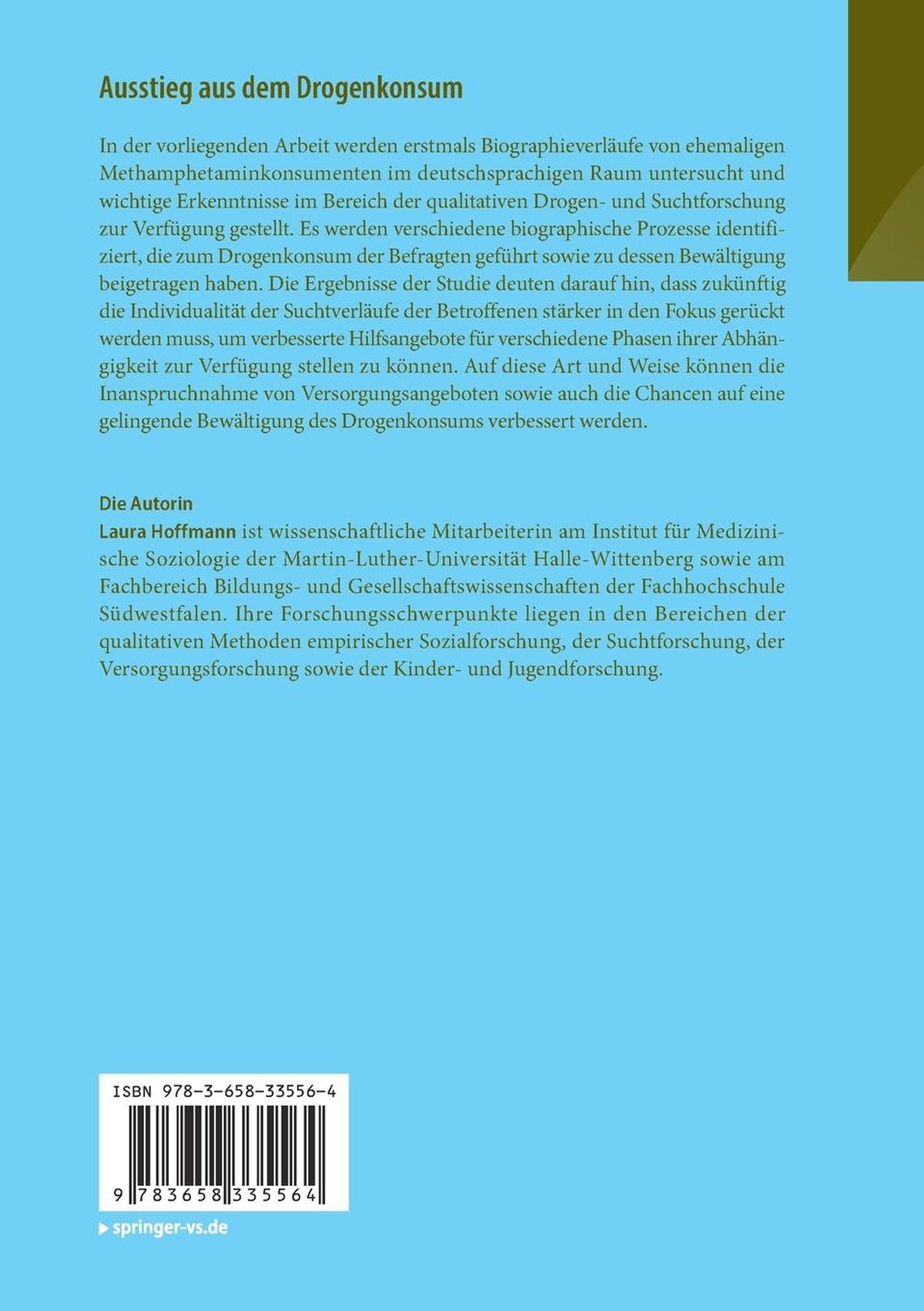 In der vorliegenden Arbeit werden erstmals Biographieverläufe von ehemaligen Methamphetaminkonsumenten im deutschsprachigen Raum untersucht und wichtige Erkenntnisse im Bereich der qualitativen Drogen- und Suchtforschung zur Verfügung gestellt. Es werden verschiedene biographische Prozesse identifiziert, die zum Drogenkonsum der Befragten geführt sowie zu dessen Bewältigung beigetragen haben. Die Ergebnisse der Studie deuten darauf hin, dass zukünftig die Individualität der Suchtverläufe der Betroffenen stärker in den Fokus gerückt werden muss, um verbesserte Hilfsangebote für verschiedene Phasen ihrer Abhängigkeit zur Verfügung stellen zu können. Auf diese Art und Weise können die Inanspruchnahme von Versorgungsangeboten sowie auch die Chancen auf eine gelingende Bewältigung des Drogenkonsums verbessert werden.