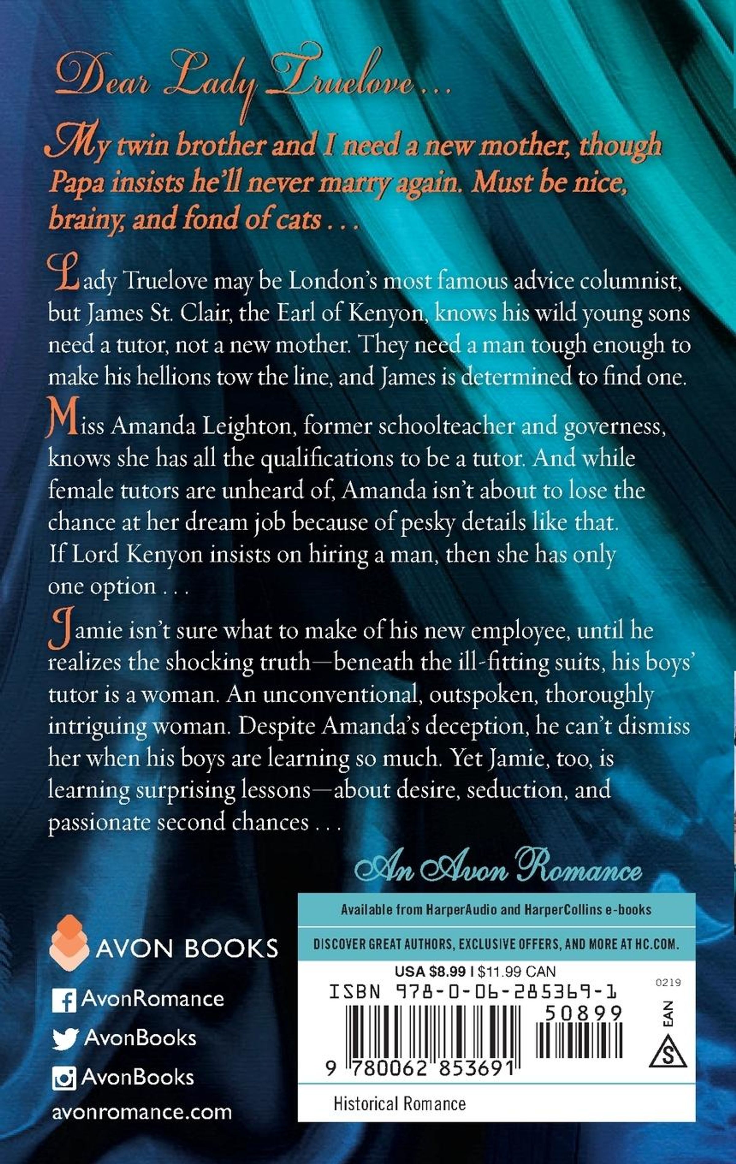 Lady Truelove may be London's most famous advice columnist, but James St. Clair, the Earl of Kenyon, knows his wild young sons need a tutor, not a new mother. They need a man tough enough to make his hellions tow the line, and James is determined to find one.