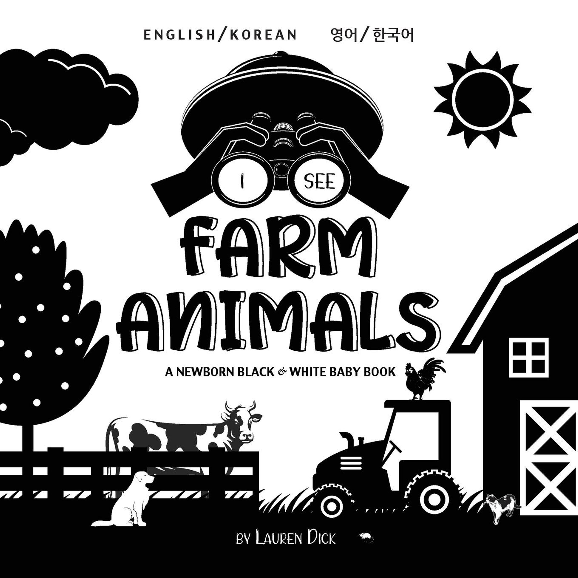 Beautiful high-contrast animal book for newborns! The I See Farm Animals bilingual English / Korean (/) black and white baby book introduces 20 farm animals with playful features. Help your baby get to know cows, horses, pigs, chickens, donkeys, ducks, gooses, dogs, cats, and more. The high-contrast design is perfect for a baby's developing eyes, and the bold patterns will be sure to grab the little one's attention! For more adventures, check out other books in the I See series!I See Safari Animals I See Farm Animals I See Ocean Animals I See Forest Animals I See Garden Animals I See Zoo Animals