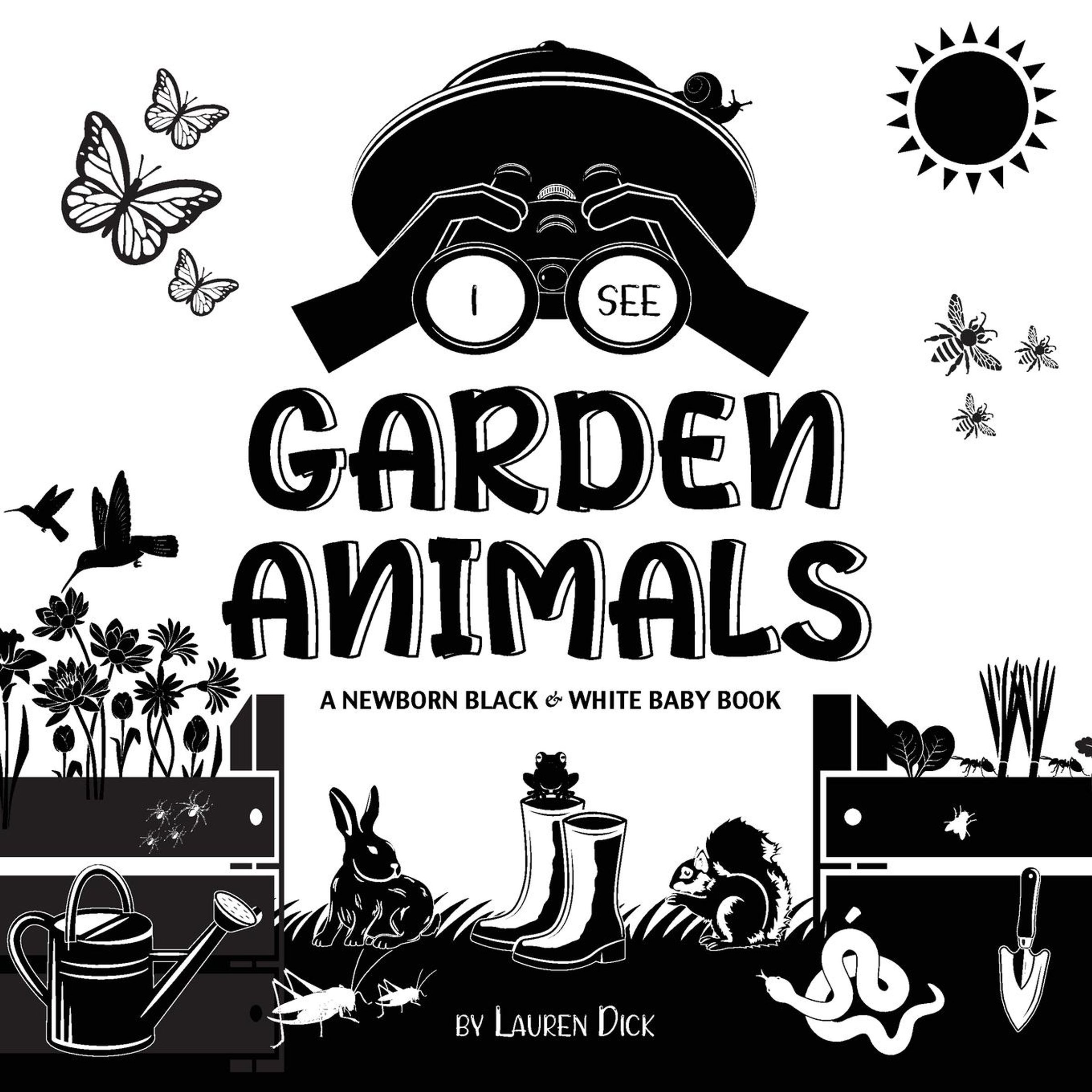 Beautiful high-contrast animal book for newborns! The I See Garden Animals black and white baby book introduces 20 garden creatures with playful features. Help your baby get to know hummingbird, butterfly, dragonfly, snail, bee, spider, snake, frog, mouse, rabbit, mole, and more. The high-contrast design is perfect for a baby's developing eyes, and the bold patterns will be sure to grab the little one's attention! For more adventures, check out other books in the I See series!I See Safari Animals I See Farm Animals I See Ocean Animals I See Forest Animals I See Garden Animals I See Zoo Animals