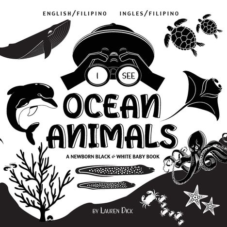 • Bilingual (English / Filipino) (Ingles / Filipino) A Newborn Black & White Baby Book (High-Contrast Design & Patterns) (Whale, Dolphin, Shark, Turtle, Seal, Octopus, Stingray, Jellyfish, Seahorse, Starfish, Crab, and More!) (Engage Ea