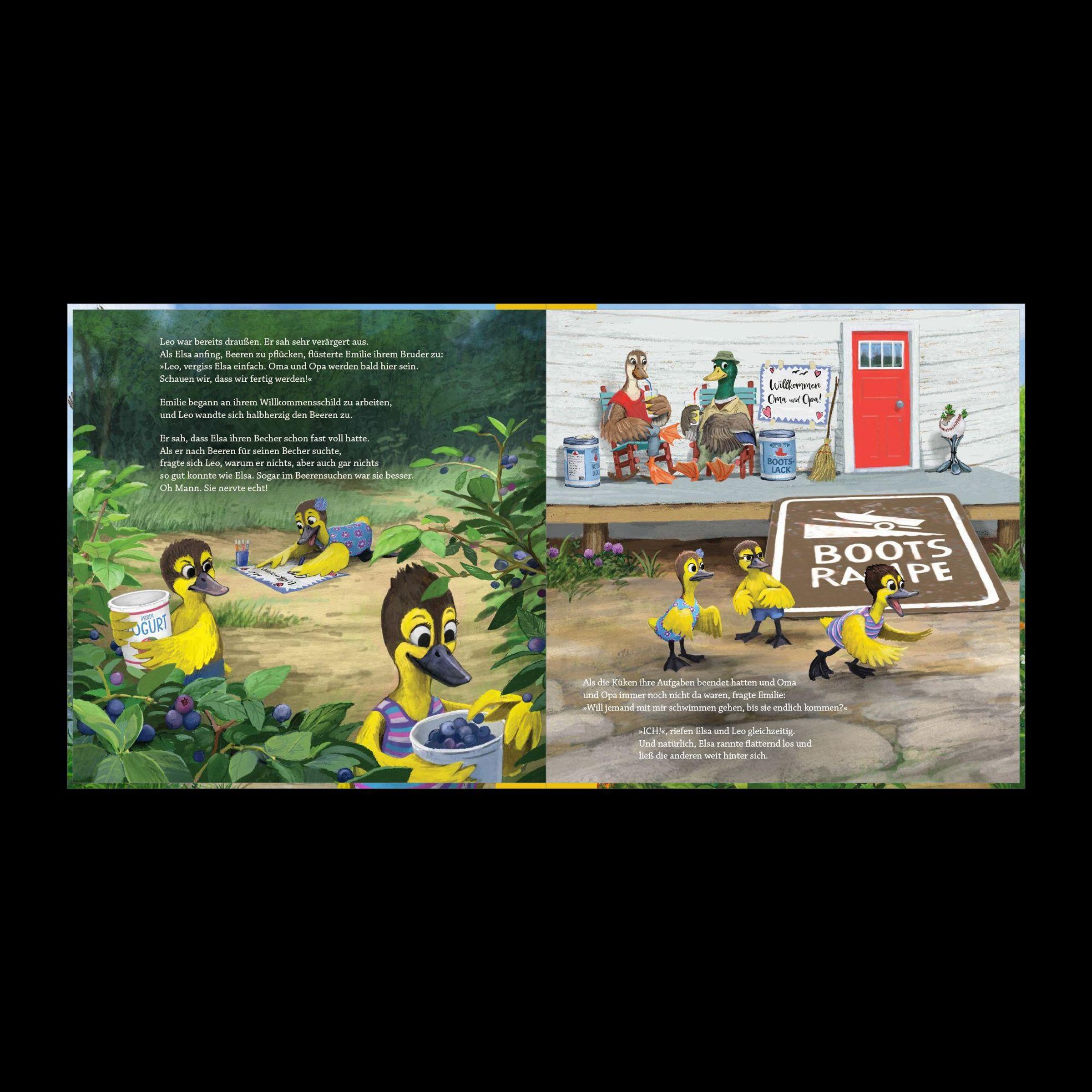 Elsa Ente ist ein paar Sekunden älter als ihre beiden Geschwister. Sie erwartet, dass sie damit immer und bei allem die Erste und Beste sein muss. So entsteht ein Wettstreit unter den Geschwistern, der zu ständigem Streit führt und fast in einer Katastrophe endet.