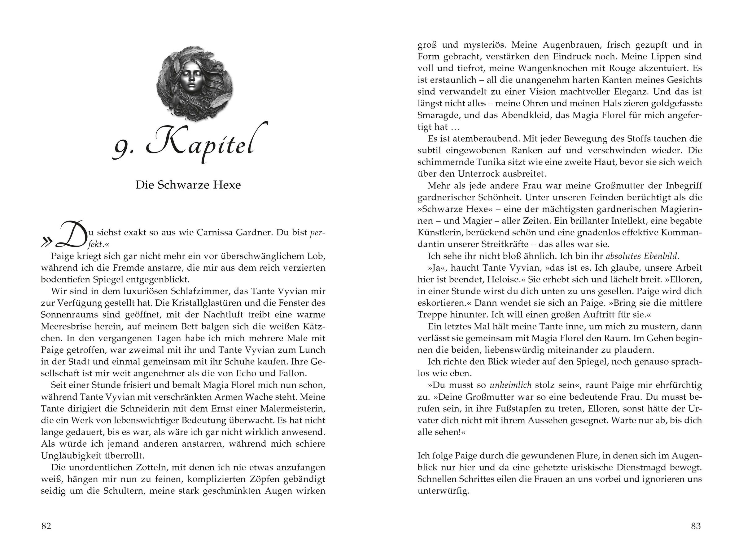 Elloren Gardner ist die Enkelin der letzten prophezeiten Schwarzen Hexe, Carnissa Gardner, die während des Reichskrieges die feindlichen Truppen zurückgeschlagen und das Volk der Gardnerier gerettet hat. Doch obwohl sie ihrer berühmten Großmutter wie aus dem Gesicht geschnitten ist, verfügt Elloren über keinerlei Macht in einer Gesellschaft, die magische Fähigkeiten über alles andere stellt.