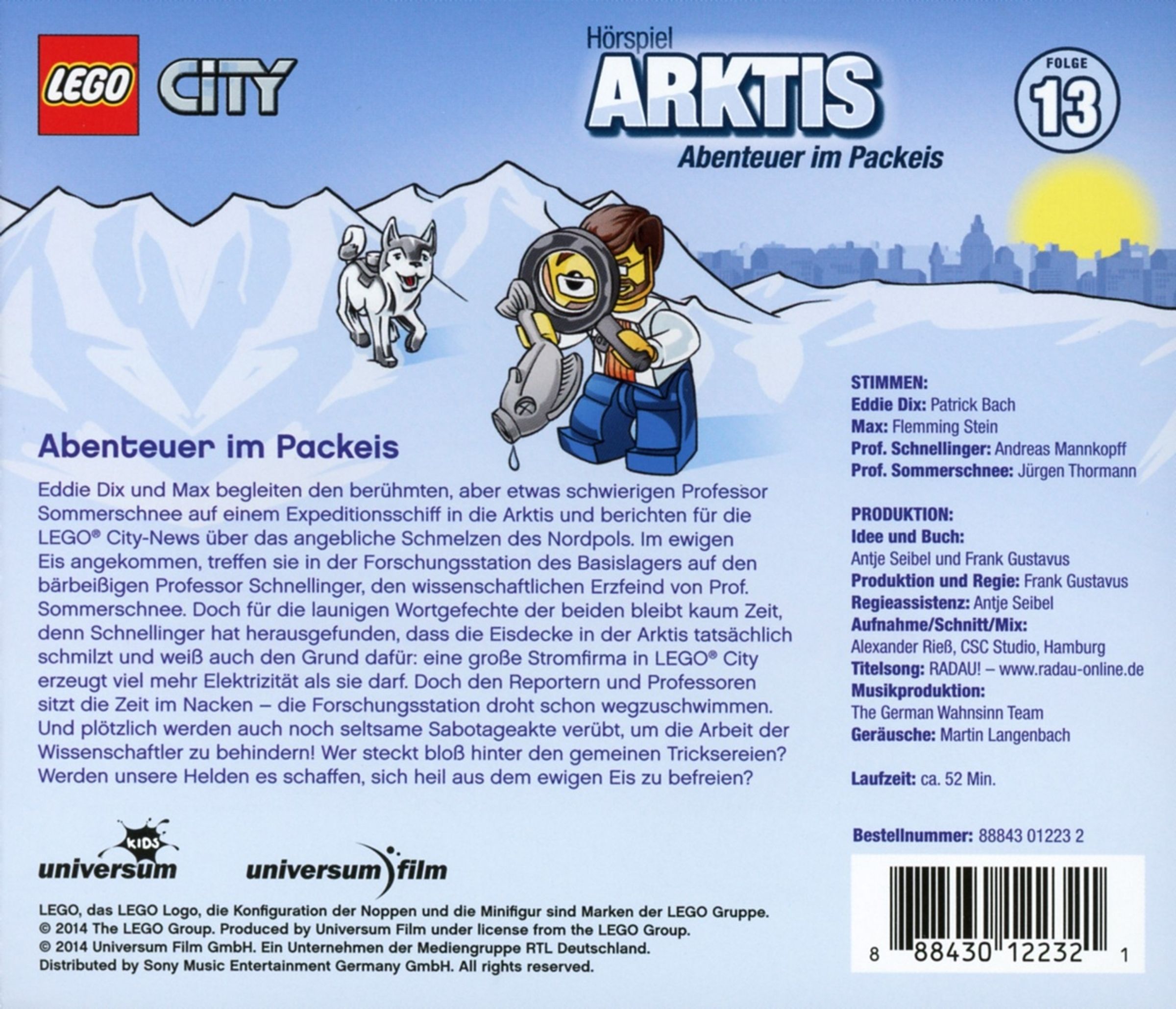 Eddie Dix und Max begleiten den berühmten, aber etwas schwierigen Professor Sommerschnee auf einem Expeditionsschiff in die Arktis und berichten für die LEGO® City-News über das angebliche Schmelzen des Nordpols. Im ewigen Eis angekommen, treffen sie in der Forschungsstation auf den bärbeißigen Professor Schnellinger, den wissenschaftlichen Erzfeind von Prof. Sommerschnee. Doch für die launigen Wortgefechte der beiden bleibt kaum Zeit, denn Schnellinger hat herausgefunden, dass die Eisdecke in der Arktis tatsächlich schmilzt und weiß auch den Grund dafür: eine große Stromfirma in LEGO® City erzeugt viel mehr Elektrizität als sie darf, aus reiner Profitgier, sie wollen viel Geld verdienen, und dazu ist ihnen jedes Mittel recht. Doch den Reportern und Professoren sitzt die Zeit im Nacken - die Forschungsstation droht schon wegzuschwimmen, als plötzlich auch noch seltsame Sabotageakte verübt werden, um die Arbeit der Wissenschaftler zu behindern! Wer steckt bloß hinter den gemeinen Tricksereien? Werden unsere Helden es schaffen, sich heil aus dem ewigen Eis zu befreien?Disk 1 von 1 (CD)