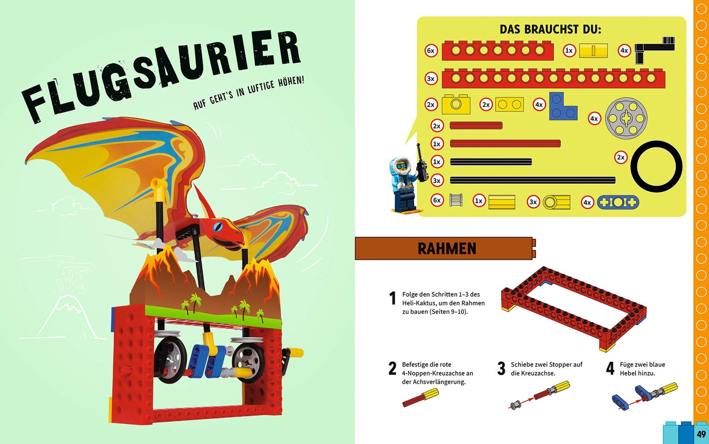 - Durchgehend vierfarbig; Box 25,5 x 25,7 x 4,4 cm; Buch (25,5 x 20,4 cm) mit 64 Seiten; 62 LEGO-Elemente; 12 Papierbögen mit vorgestanzten Teilen