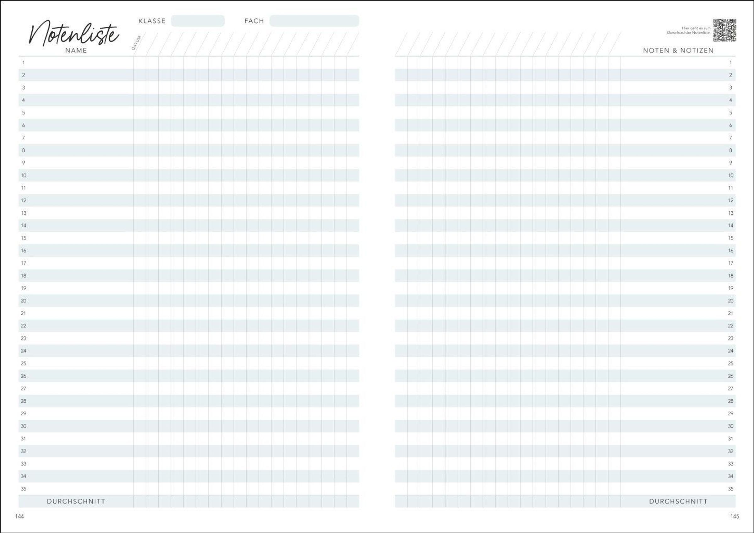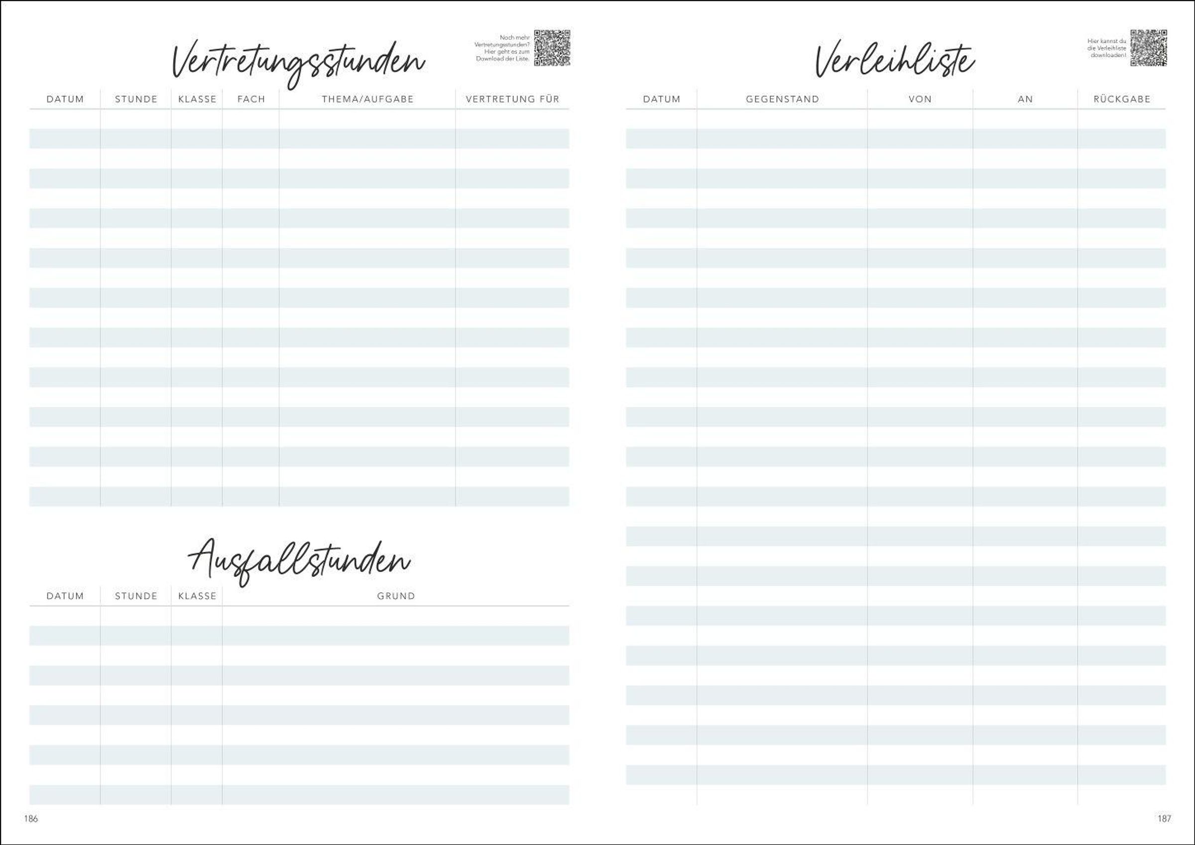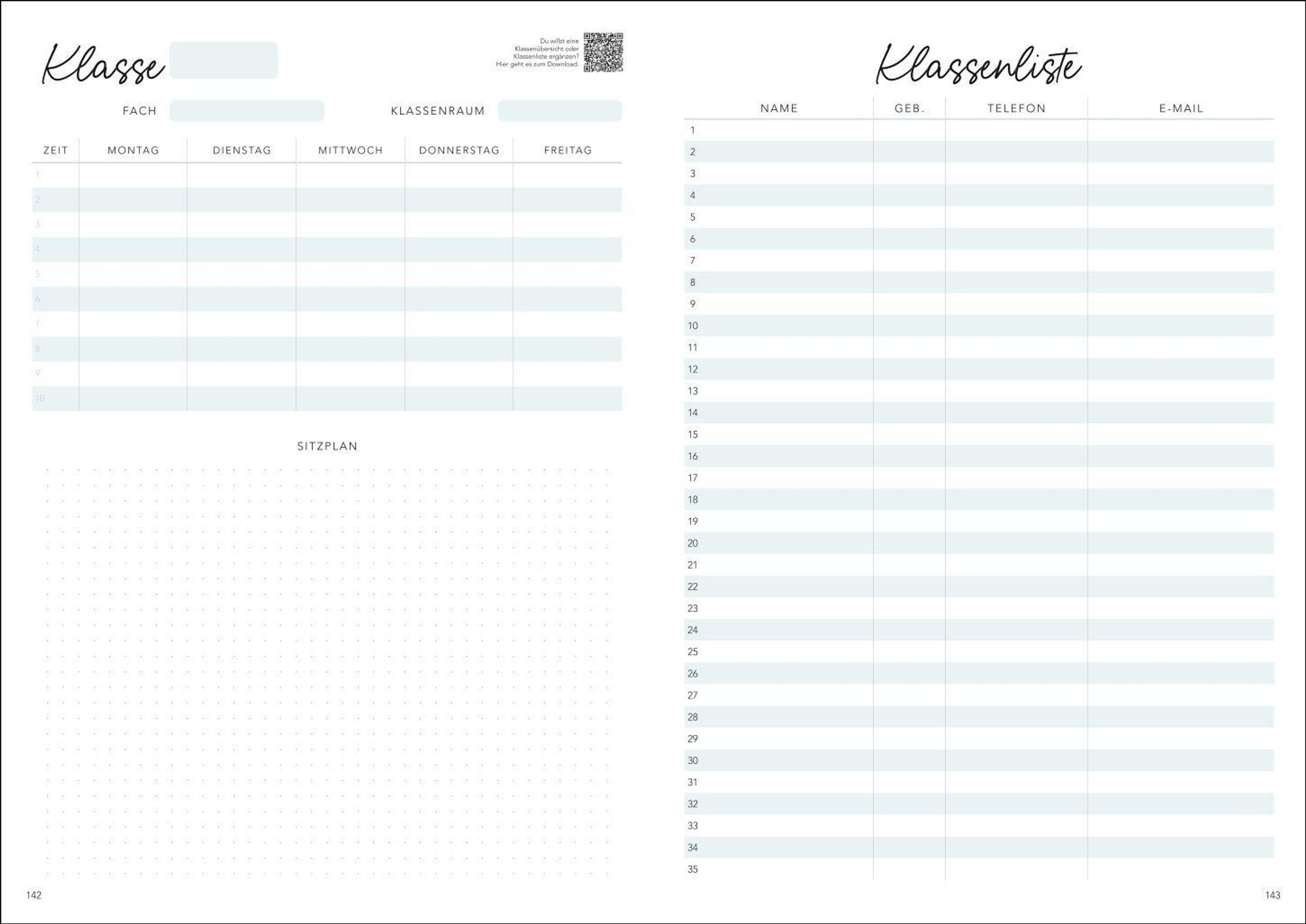 Klassen- und Notenlisten, Stundenpläne, Schulferien, Monatsreflexionen und wichtige Telefonnummern: All das findet in dem praktischen Schulplaner für Lehrer: innen Platz