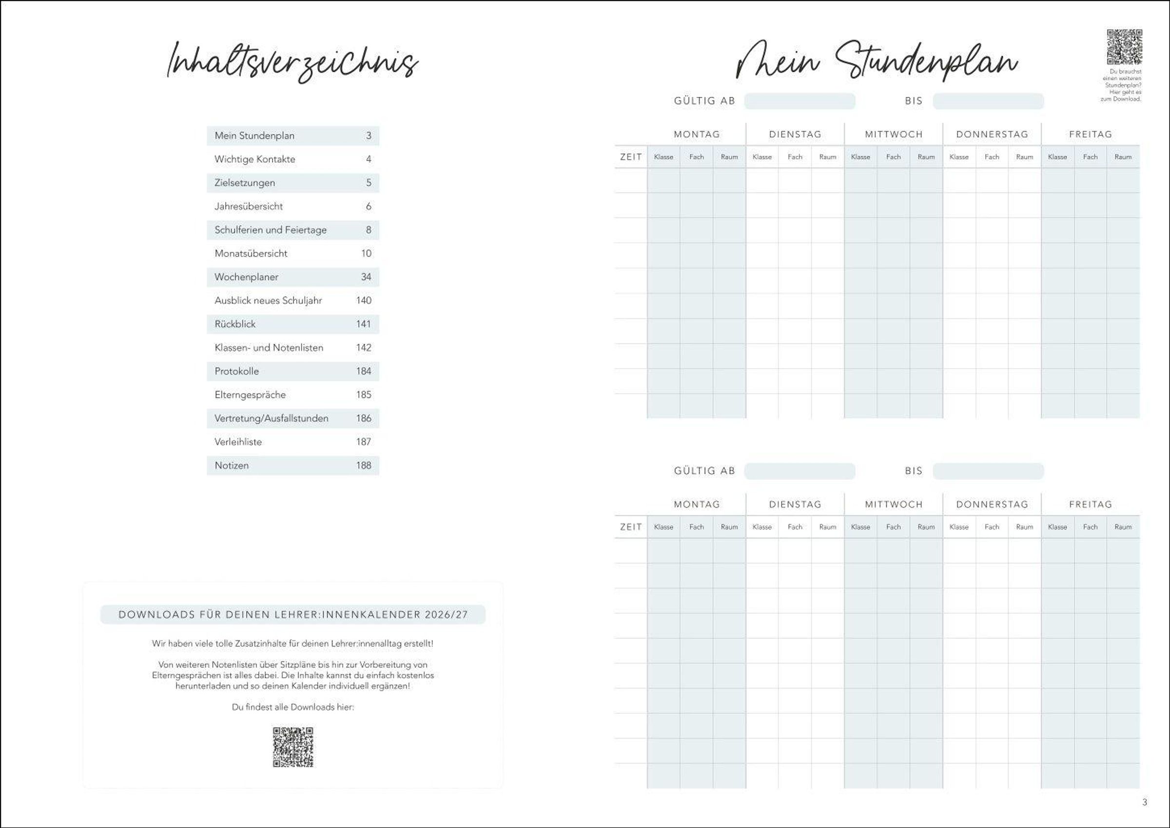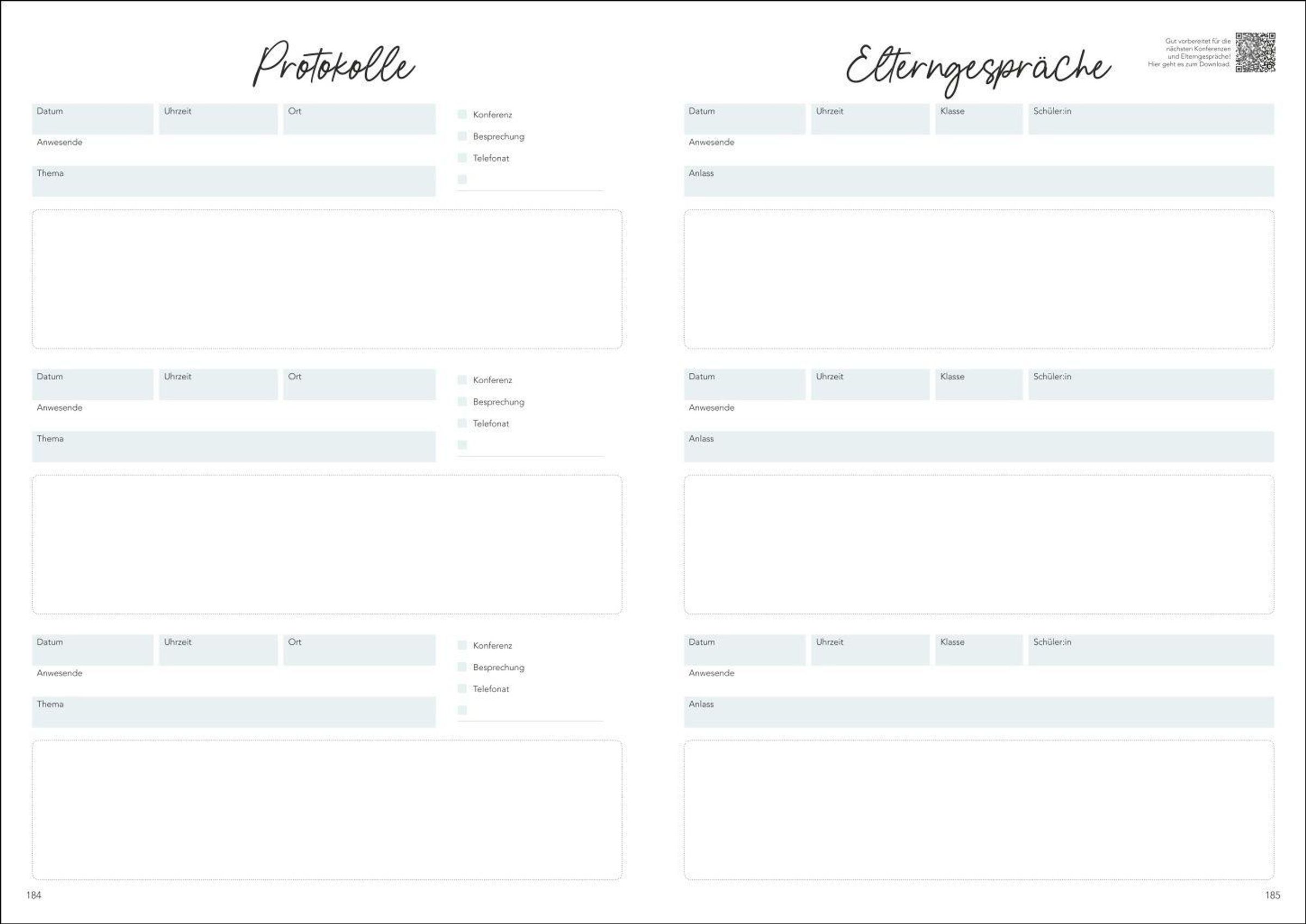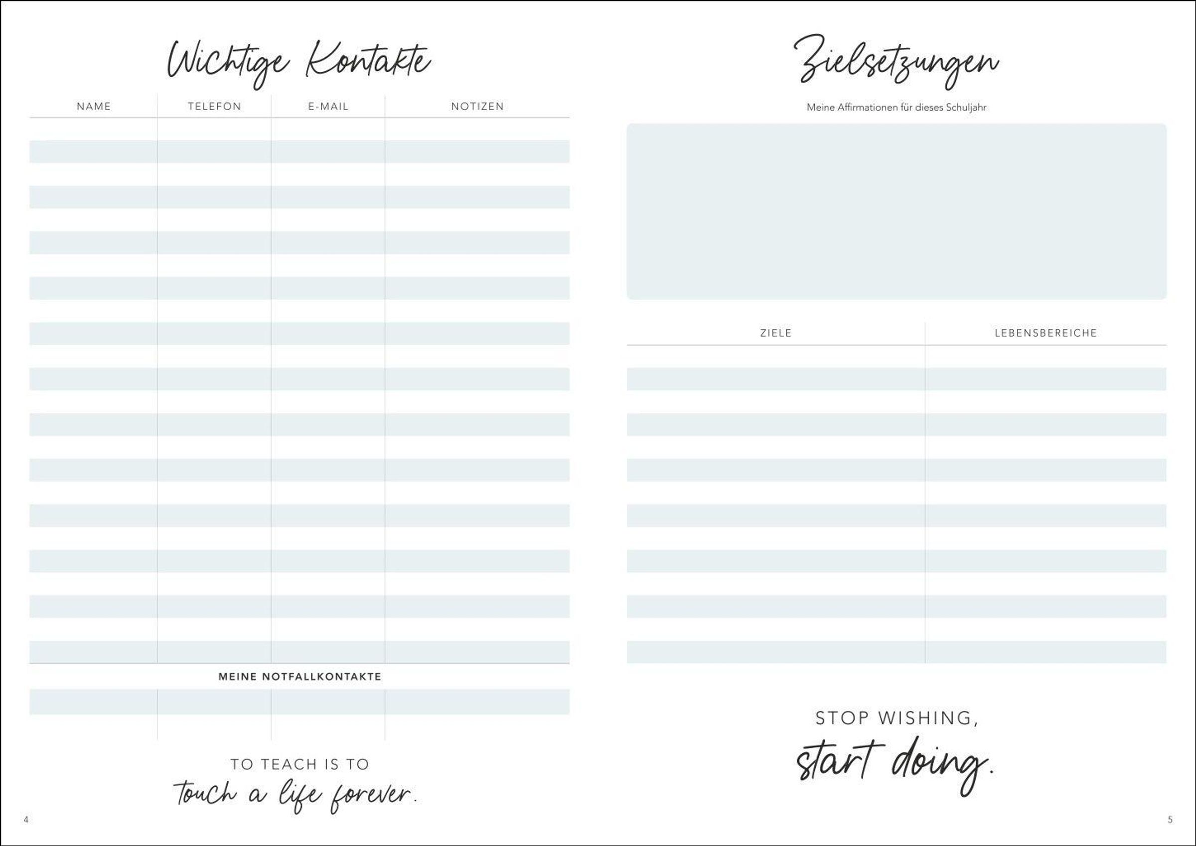 Klassen- und Notenlisten, Stundenpläne, Schulferien, Monatsreflexionen und wichtige Telefonnummern: All das findet in dem praktischen Schulplaner für Lehrer: innen Platz
