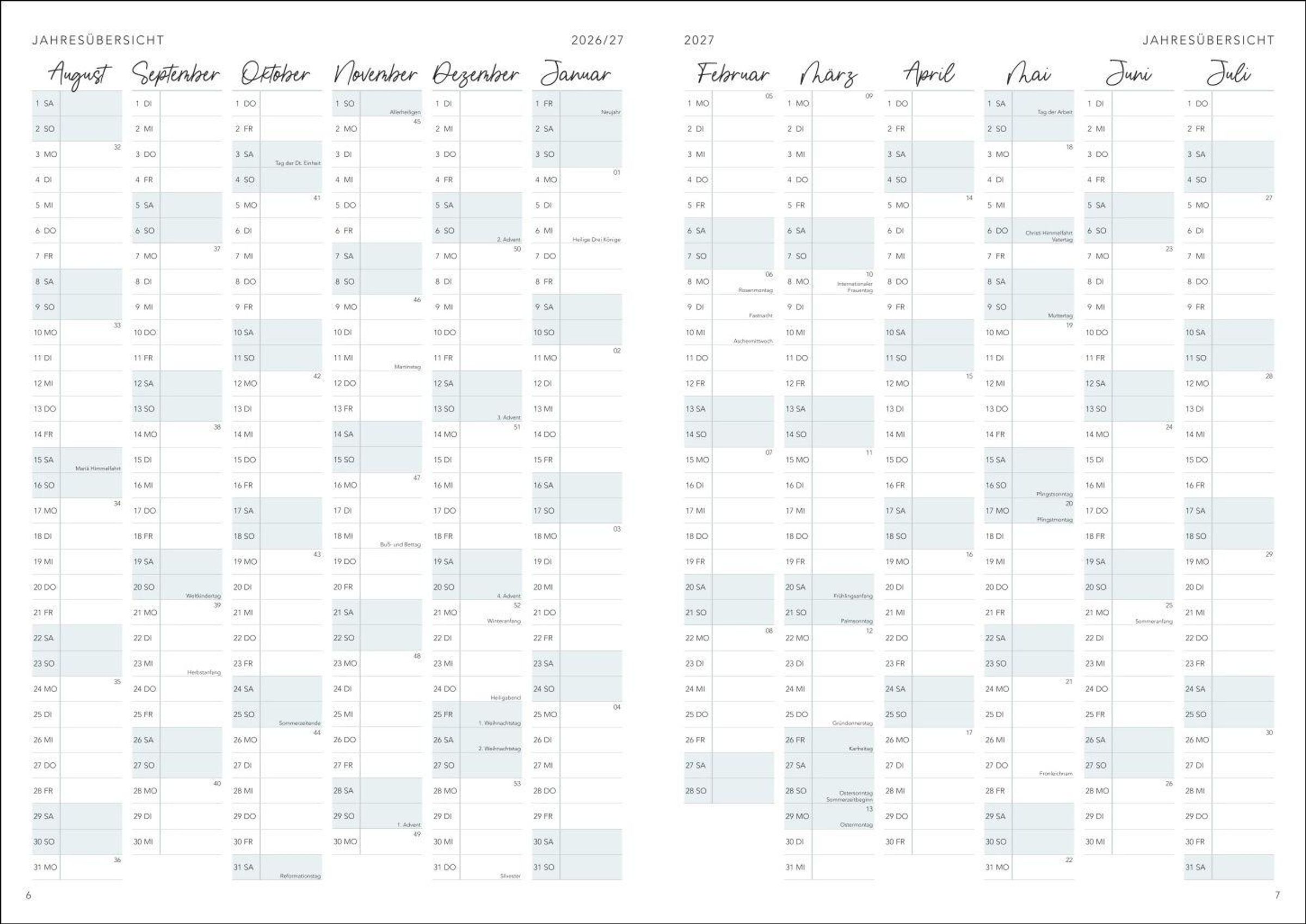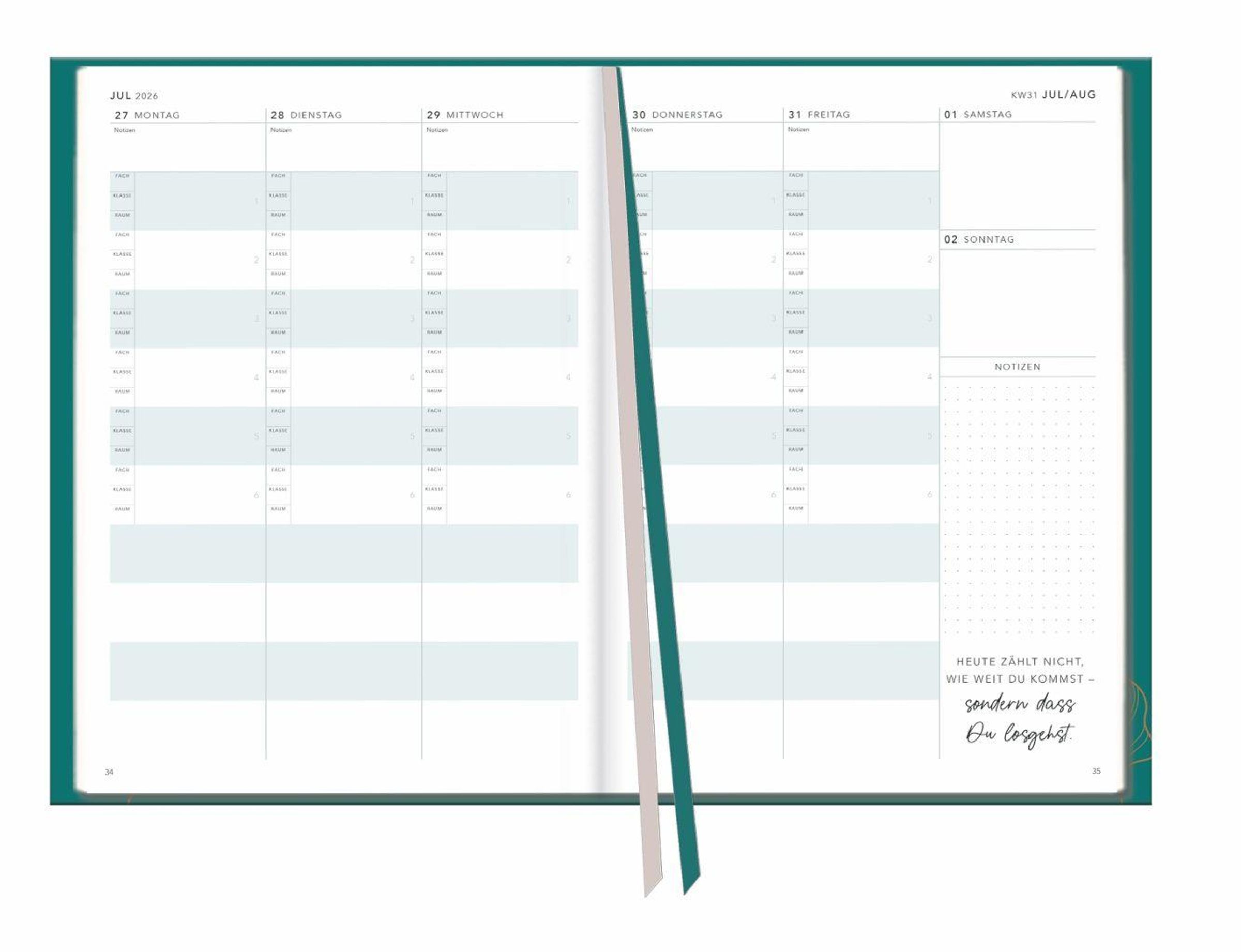 - Hochwertiger Buchkalender für den Überblick in der Schule: Mit vielen Sonderseiten, Lesebändchen, Kapitalband und Froschtasche. Kalender für das Schuljahr 2026/27