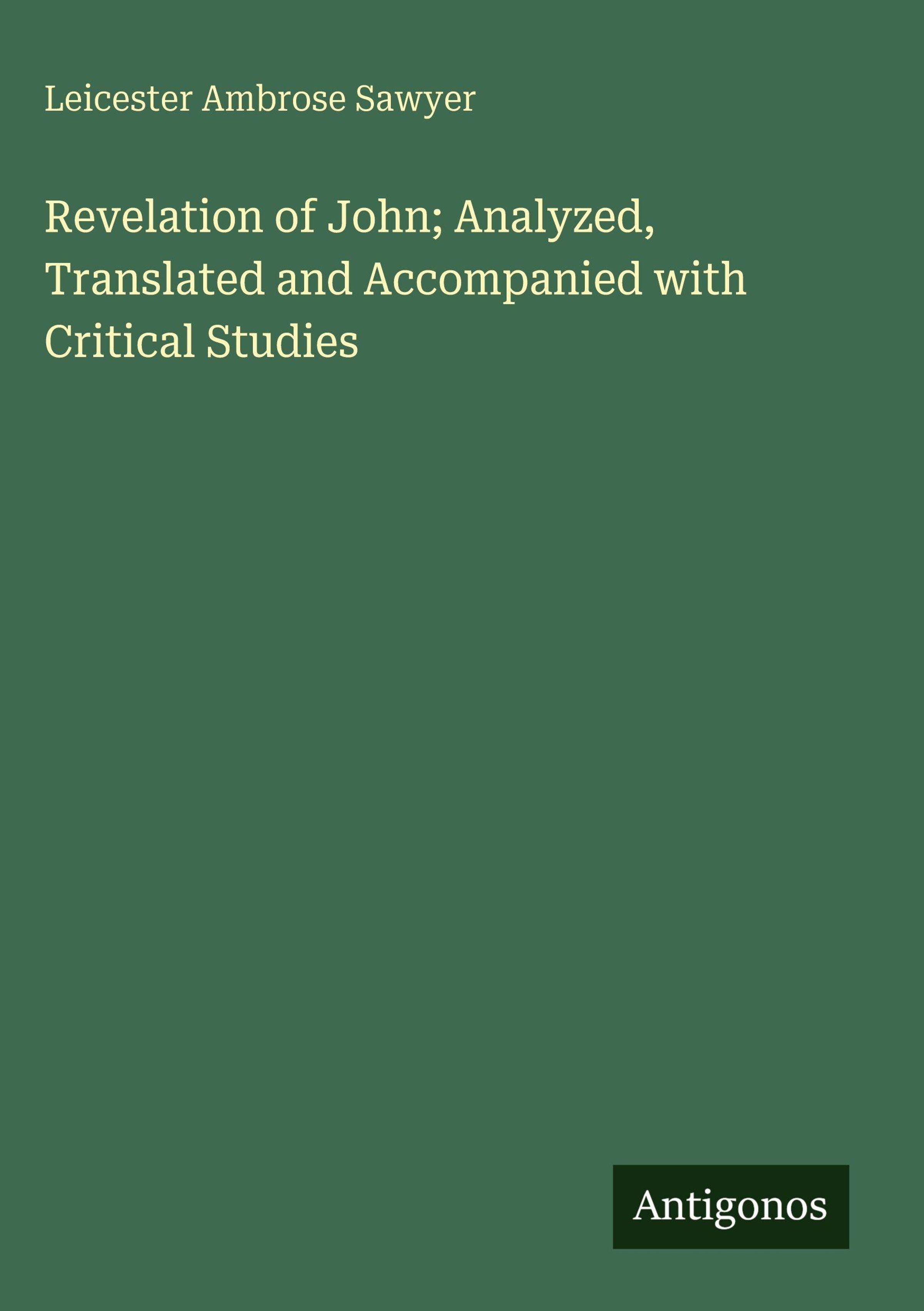 Leicester Ambrose Sawyer: Revelation of John; Analyzed, Translated and Accompanied with Critical Studies, Gebunden