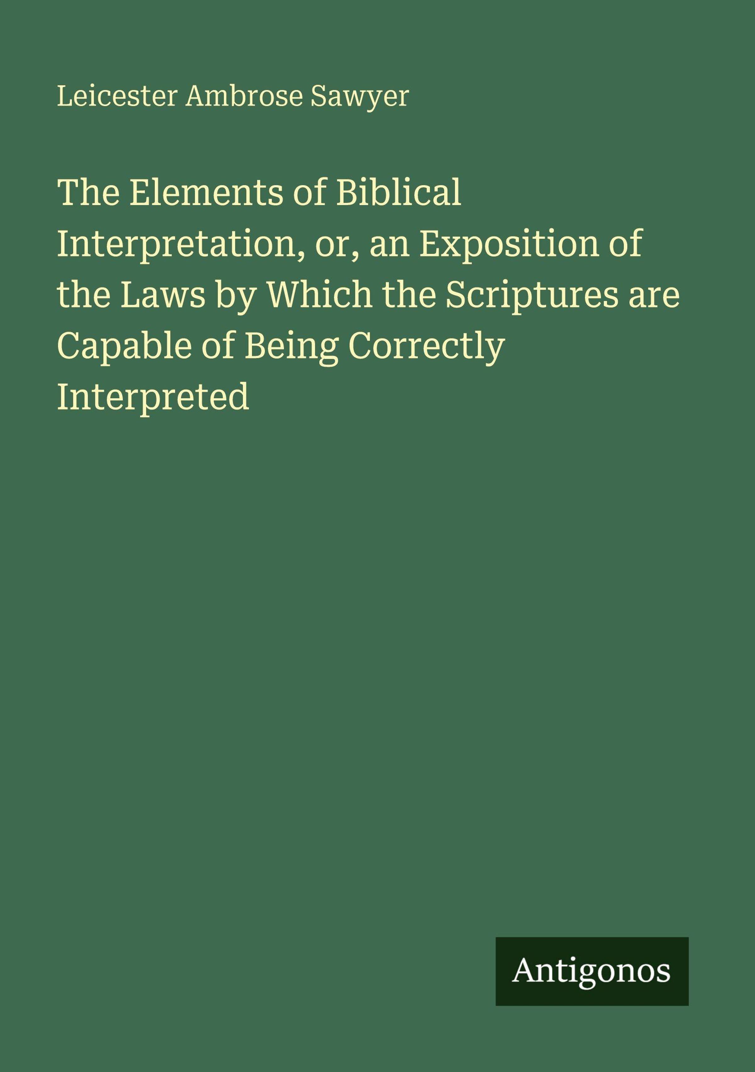 Leicester Ambrose Sawyer: The Elements of Biblical Interpretation, or, an Exposition of the Laws by Which the..., Kartoniert / Broschiert