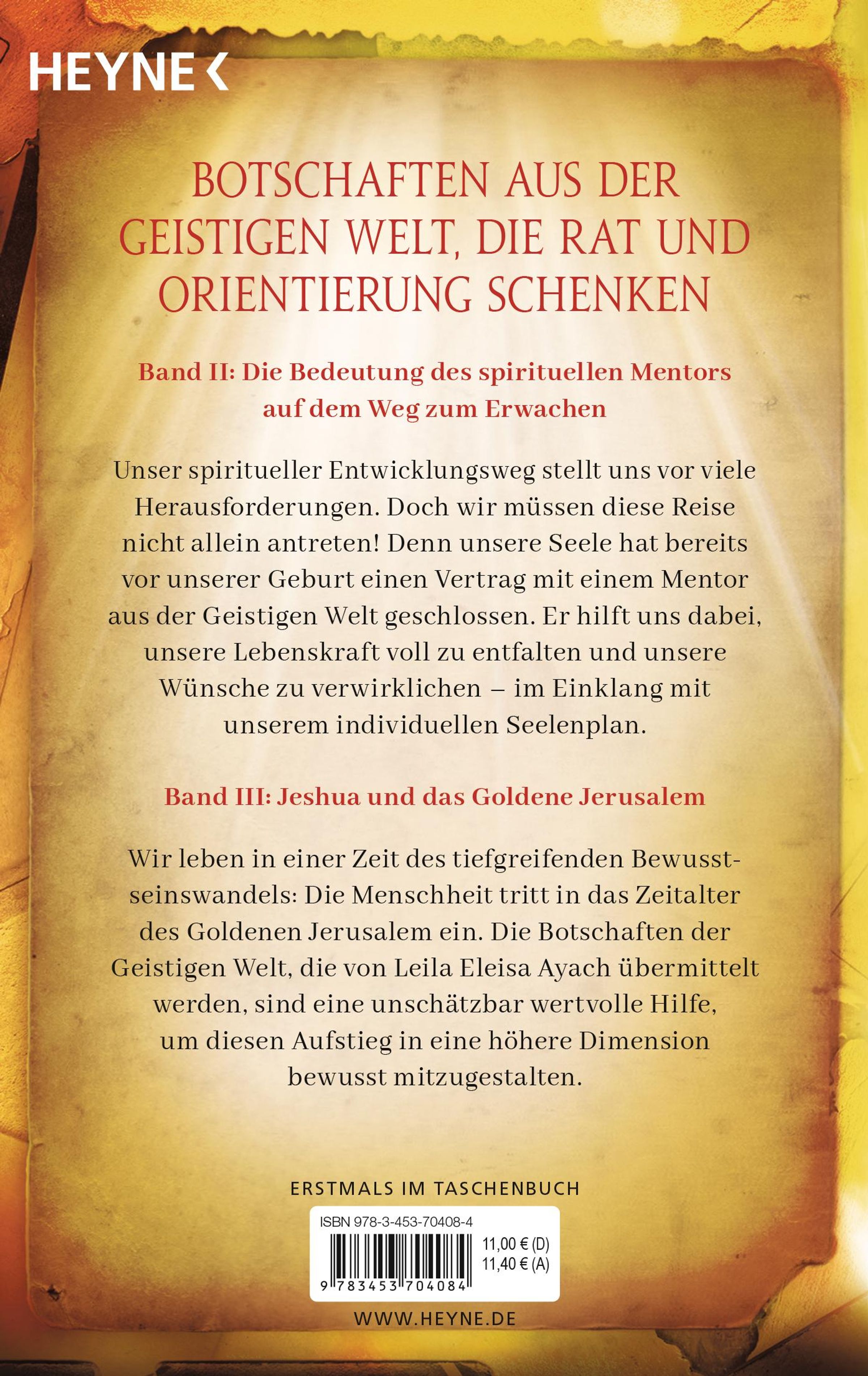 Band III : Wir leben in einer Zeit des tiefgreifenden Bewusstseinswandels: Die Menschheit tritt in ein neues Zeitalter ein - das Zeitalter des Goldenen Jerusalem. Wie wir diesen Aufstieg in eine höhere Dimension bewusst mitgestalten können, zeigen die Botschaften aus der Geistigen Welt, die von Leila Eleisa Ayach übermittelt werden.