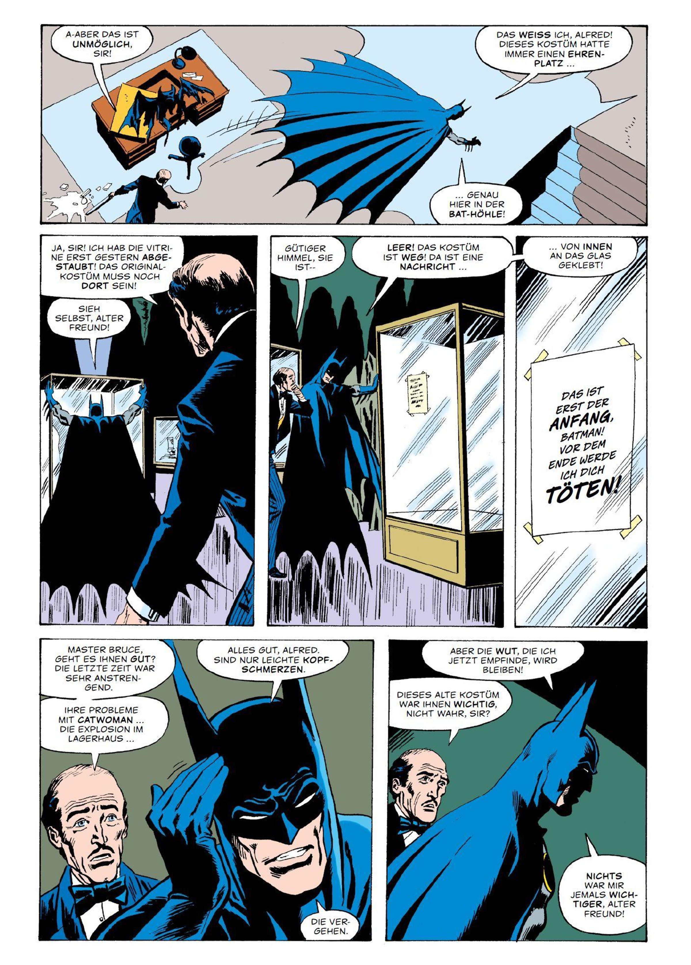 BATMANS ENTSTEHUNGSGESCHICHTE In der Bat-Höhle wird eingebrochen! Der unbekannte Dieb stiehlt dabei nicht nur einen für Bruce Wayne unbezahlbaren Gegenstand, er hinterlässt auch eine unmissverständliche Botschaft am Tatort: Er will Batman vernichten! Die Suche nach dem Täter führt den Dunklen Ritter auf eine Reise durch die Vergangenheit zu den ersten Begegnungen mit Verbündeten wie seinem Butler Alfred Pennyworth, Commissioner Gordon und Robin, aber auch mit Feinden wie dem Joker oder dem Mörder seiner Eltern.