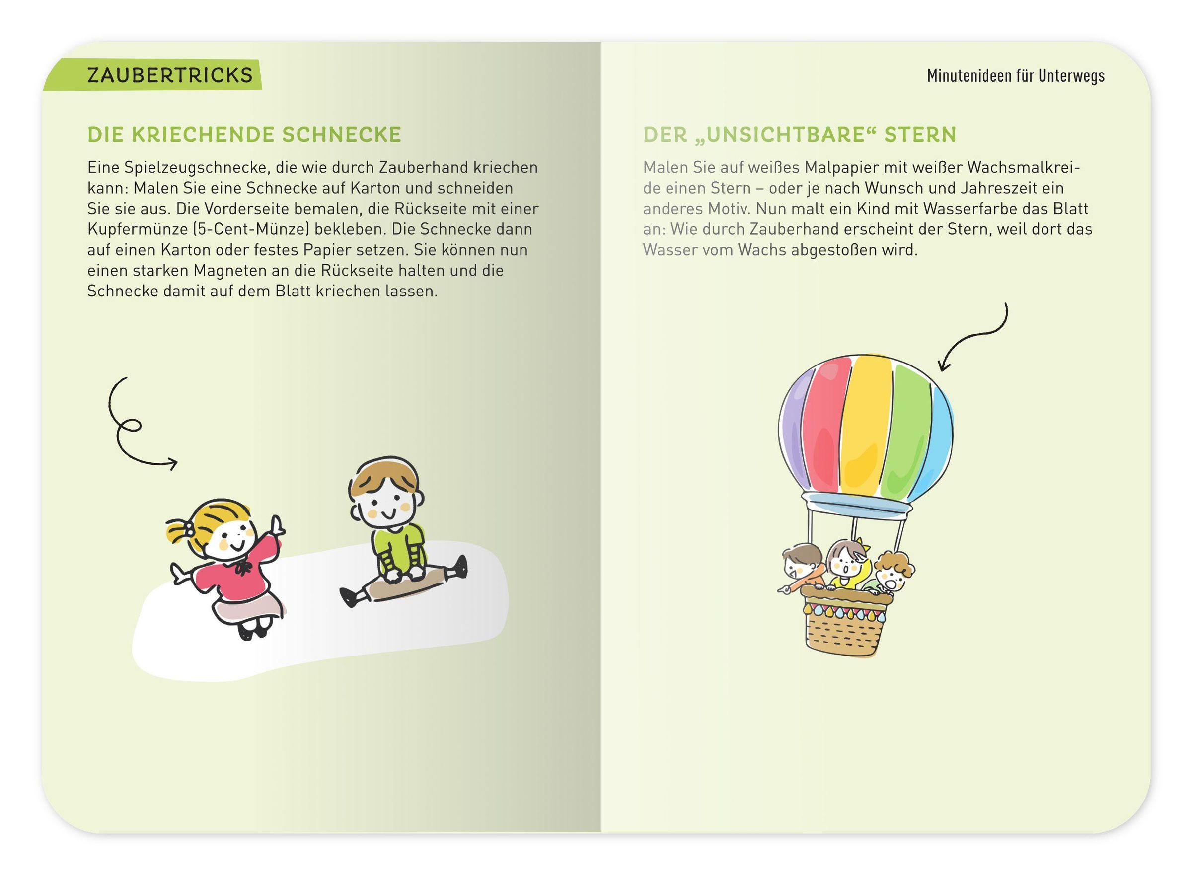 Neben dem Kalendarium finden sich im Terminplaner zahlreiche Spielideen für unterwegs, die sich spontan im Kindergarten oder auf Ausflügen einsetzen lassen - perfekt für kleine Pausen zwischendurch.