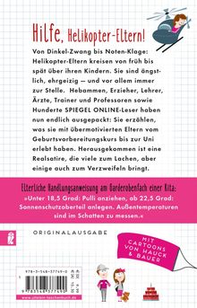Hilfe, Helikopter-Eltern! Von Dinkel-Zwang bis Noten-Klage: Helikopter-Eltern kreisen von früh bis spät über ihren Kindern. Sie sind ängstlich, ehrgeizig - und vor allem immer zur Stelle. Hebammen, Erzieher, Lehrer, Ärzte, Trainer und Professoren sowie Hunderte SPIEGEL ONLINE-Leser haben nun endlich ausgepackt: Sie erzählen, was sie mit übermotivierten Eltern vom Geburtsvorbereitungskurs bis zur Uni erlebt haben. Herausgekommen ist eine Realsatire, die viele zum Lachen, aber einige auch zum Verzweifeln bringt. Elterliche Handlungsanweisung am Garderobenfach einer Kita: 'Unter 18, 5 Grad: Pulli anziehen, ab 22, 5 Grad: Sonnenschutzoberteil anlegen. Außentemperaturen sind im Schatten zu messen.'