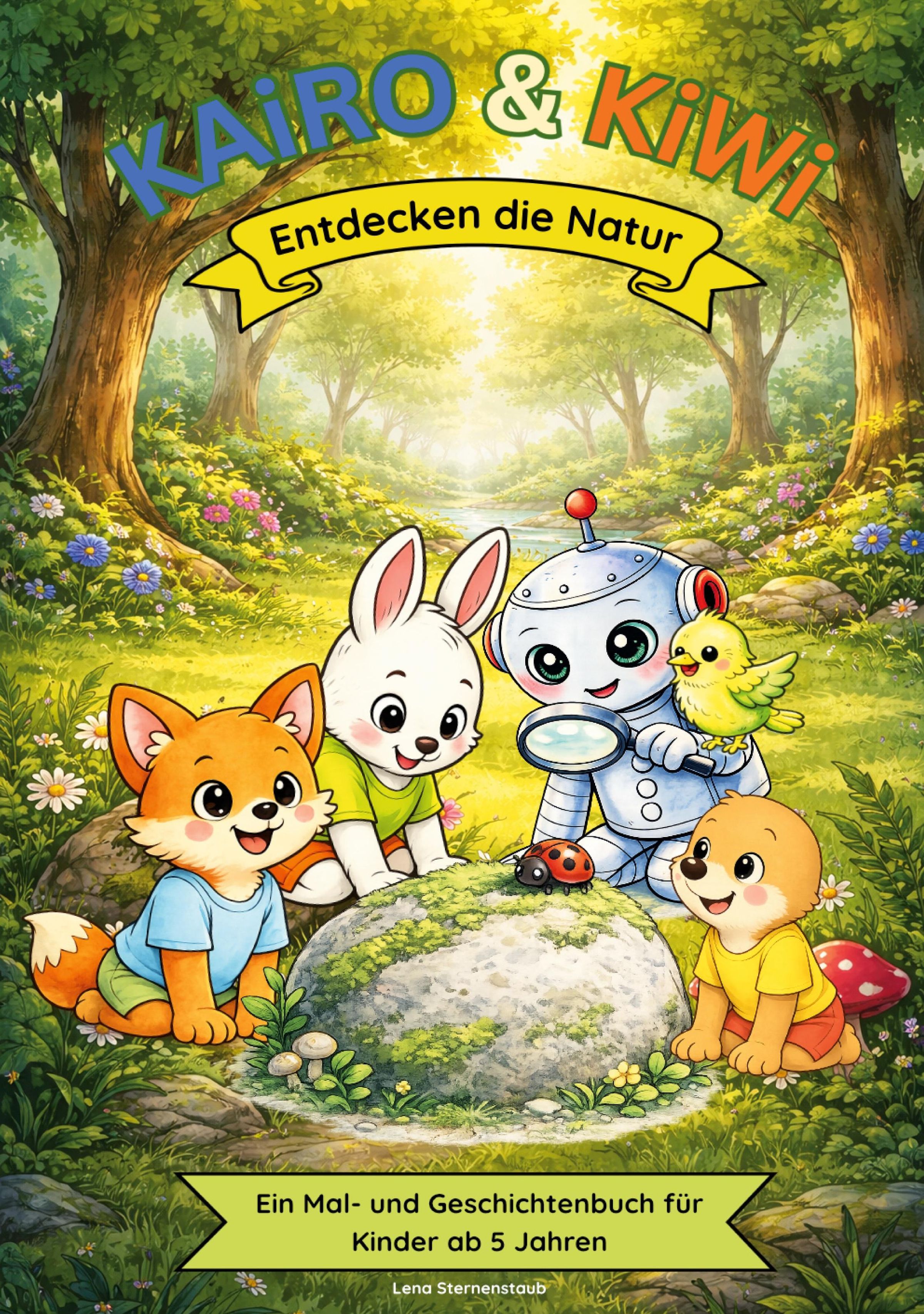 Die Geschichte von Kairo & Kiwi ist ein besonderes Mal- und Geschichtenbuch für Kinder ab 5 Jahren. In dieser liebevoll erzählten Geschichte dürfen Kinder den kleinen Roboter Kairo und den Vogel Kiwi auf ihren Abenteuern begleiten und mitfühlen. Seite für Seite können sie die Welt von Kairo und Kiwi mit Fantasie und Farben lebendig machen. Dieses Buch ist bewusst ruhig und offen gestaltet. Es stärkt Kreativität, vermittelt Selbstwert und lädt Kinder ein, achtsam hinzusehen. Am Ende der Geschichte bedankt sich Kairo persönlich beim Kind. Du bist wertvoll, genau so, wie du bist. Perfekt für gemütliche Kuschel- und Malmomente beim gemeinsamen Vorlesen, ob tagsüber auf der Couch oder abends eingekuschelt im Bett.