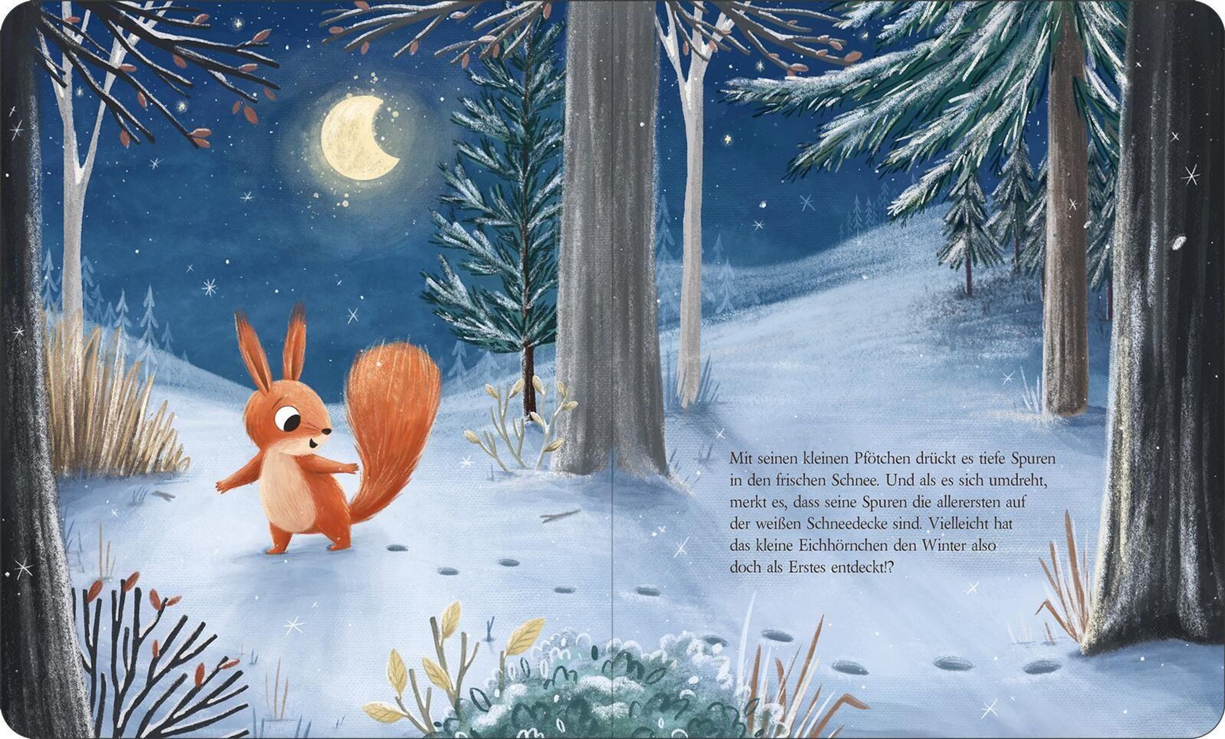 Das feinsinnige Bilderbuch lädt ein zu einem Spaziergang durch den Winterwald. An der Seite des kleinen Eichhörnchens erleben die kleinen Betrachter, wie sich der Wald in der kalten Jahreszeit wandelt. Stimmungsvolle Illustrationen und ein poetischer Text machen die Magie des Winters greifbar. Ein wunderschönes erstes Winterbilderbuch mit dicken Pappseiten für kleine Hände.