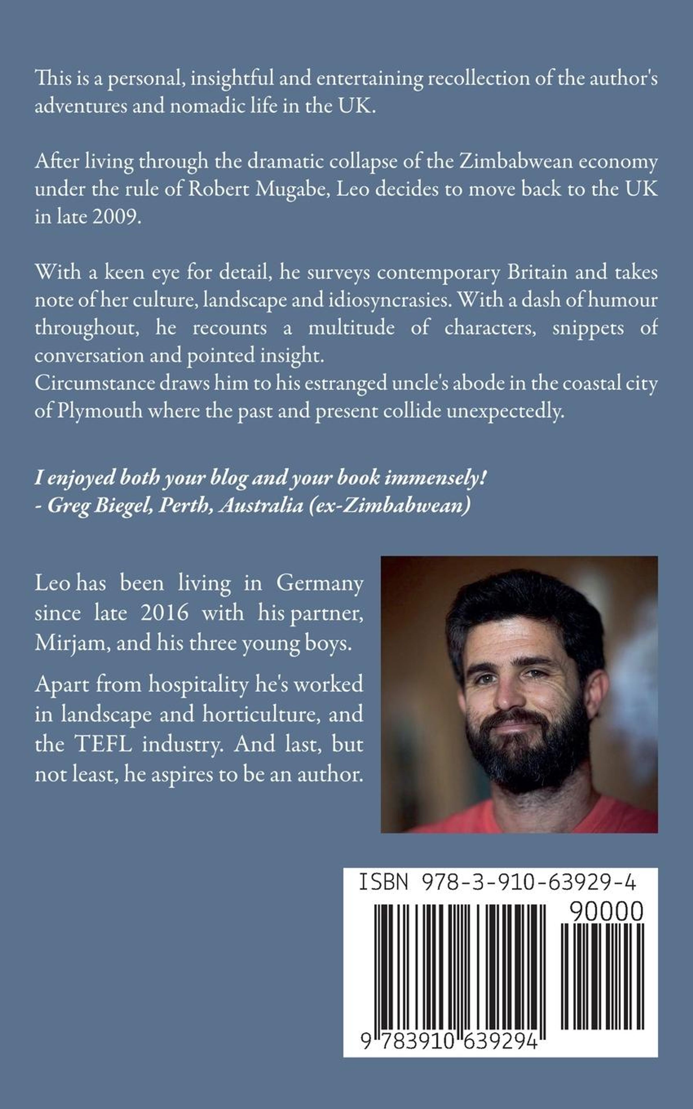 With a keen eye for detail, he surveys contemporary Britain and takes note of her culture, landscape and idiosyncrasies. With a dash of humour throughout, he recounts a multitude of characters, snippets of conversation and pointed insight. Circumstance draws him to his estranged uncle's abode in the coastal city of Plymouth where the past and present collide unexpectedly.