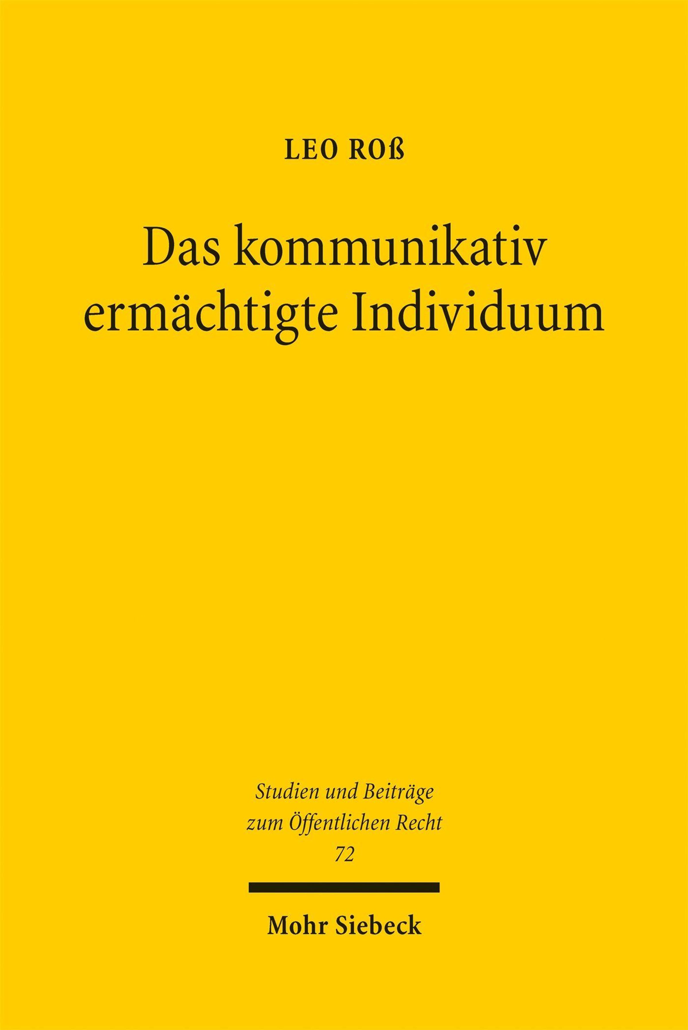 Gelber Hintergrund, oben LEO ROß, in der Mitte "Das kommunikativ ermächtigte Individuum". Unten "Mohr Siebeck"., Buch