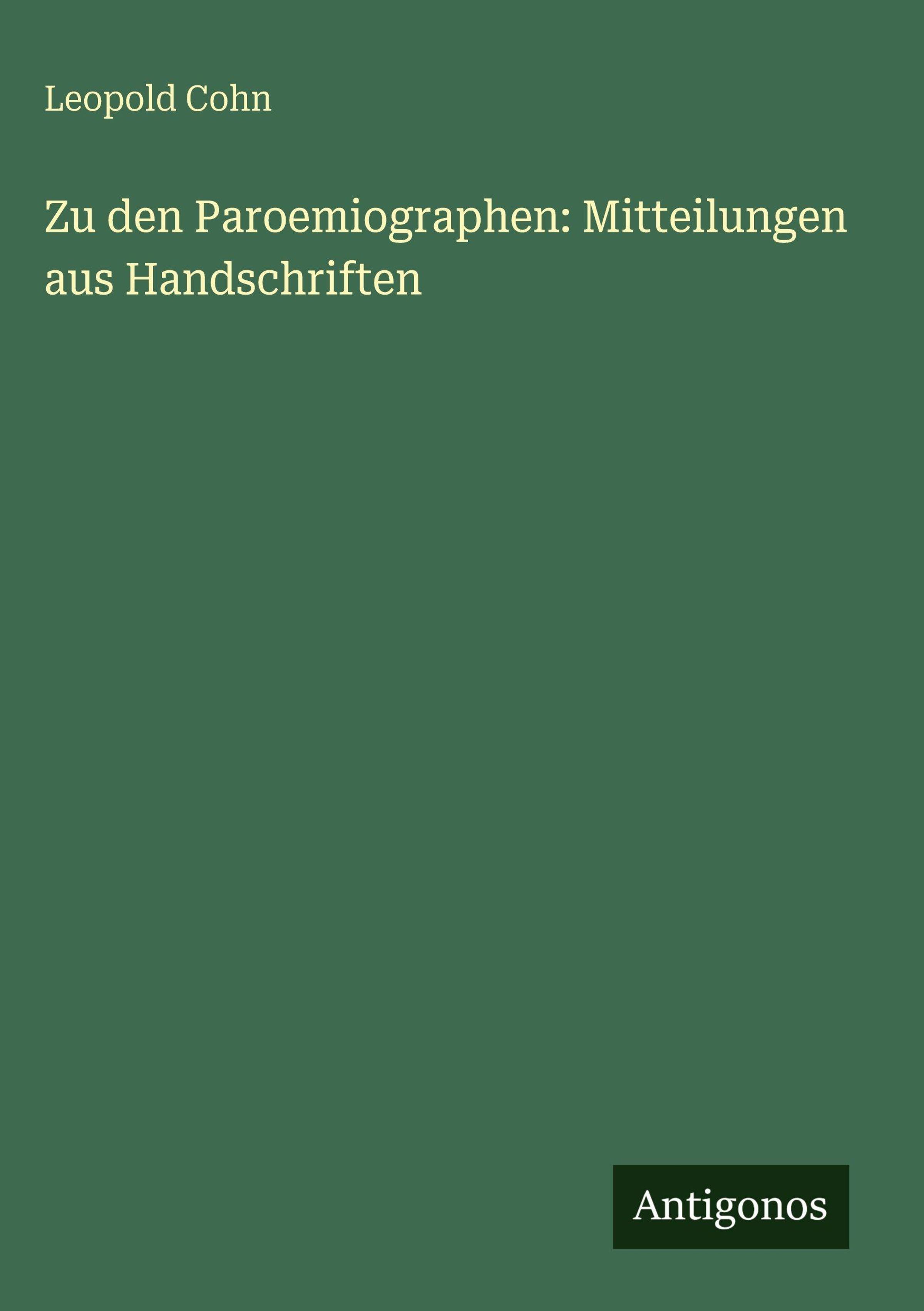 Leopold Cohn: Zu den Paroemiographen: Mitteilungen aus Handschriften, Gebunden