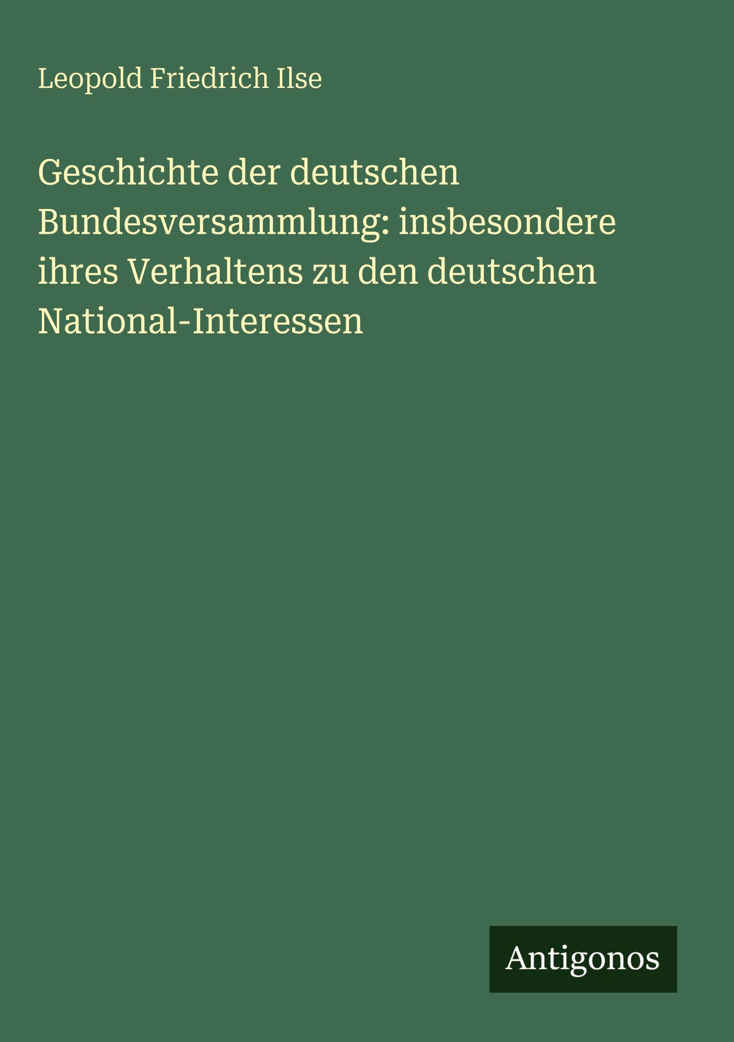 Der Artikel Leopold Friedrich Ilse: Geschichte der deutschen Bundesversammlung: insbesondere ihres Verhaltens zu den deutschen National-Interessen wurde in den Warenkorb gelegt.