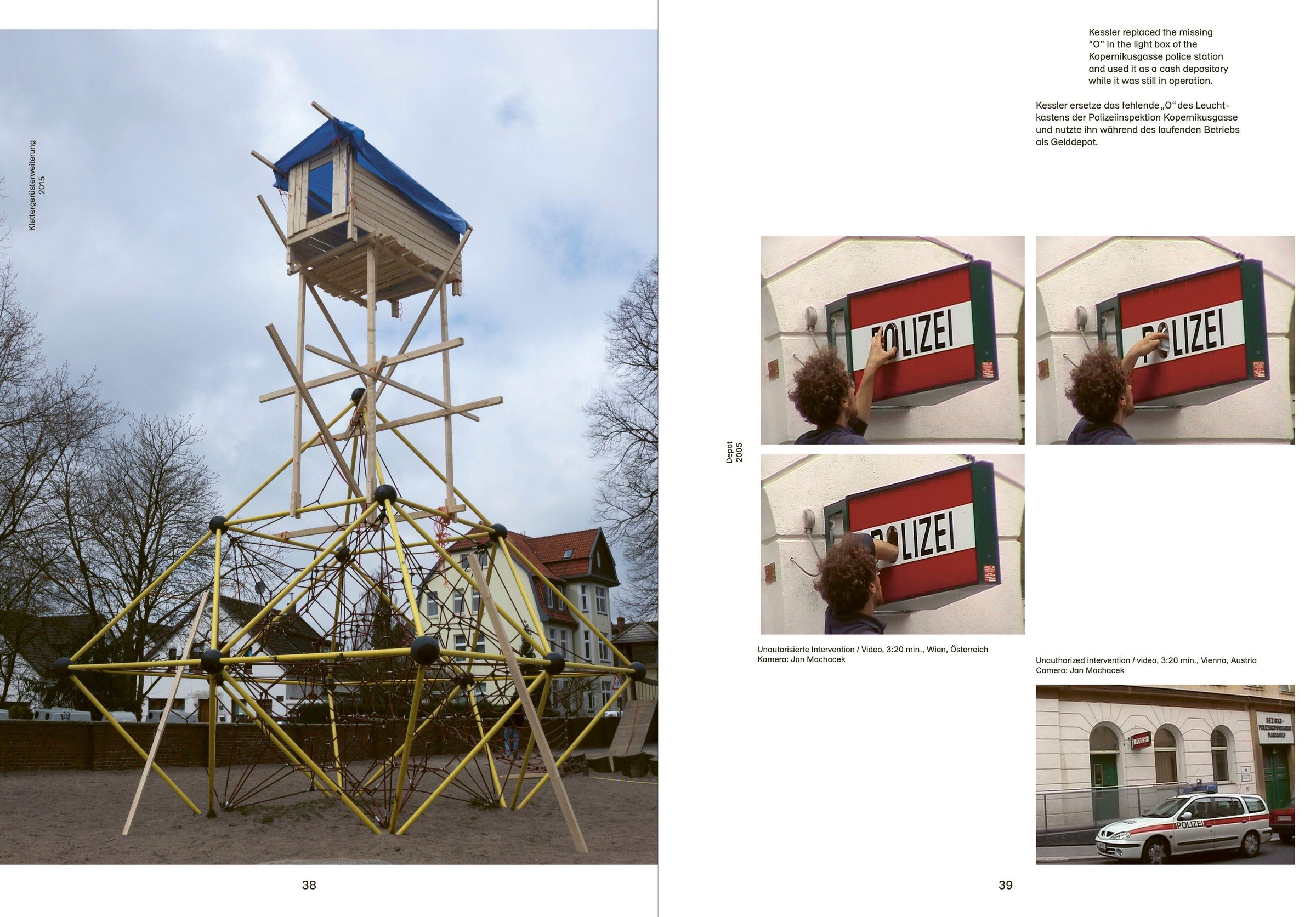 Leopold Kessler: Arbeiten im öffentlichen Raum. Menschen entspannen in Hängematten, ein anderer trainiert auf einem Gerät., Buch