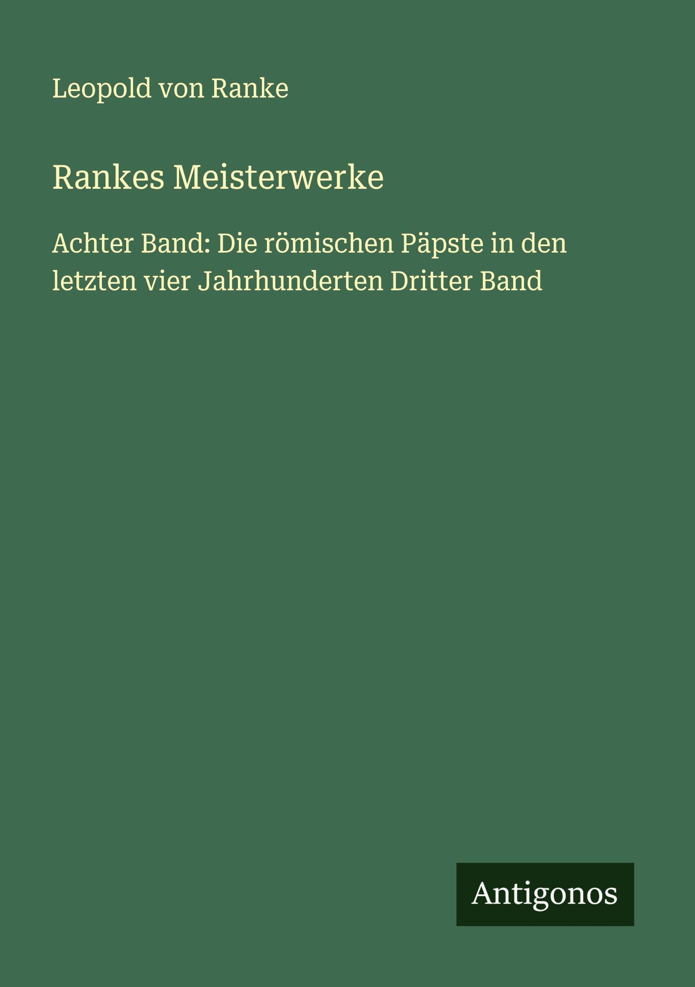 - Achter Band: Die römischen Päpste in den letzten vier Jahrhunderten Dritter Band