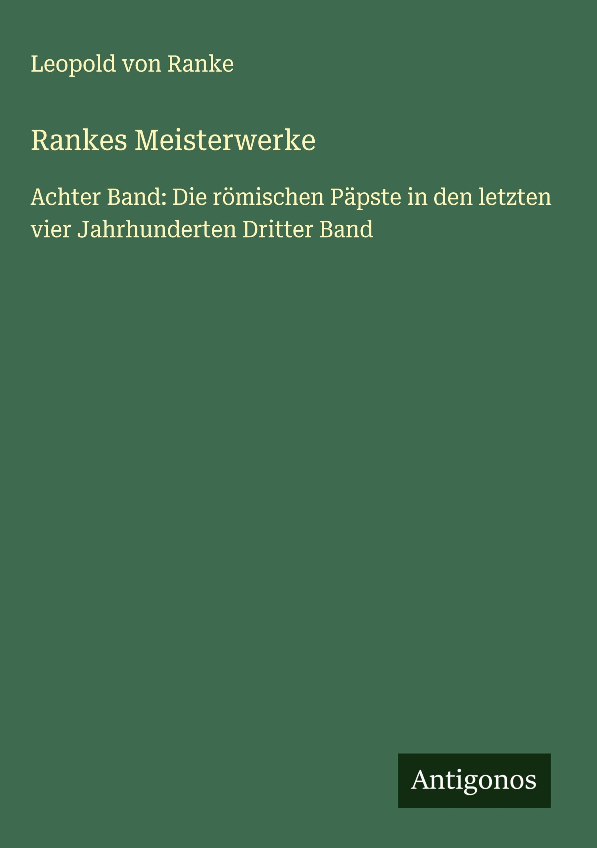 • Achter Band: Die römischen Päpste in den letzten vier Jahrhunderten Dritter Band
