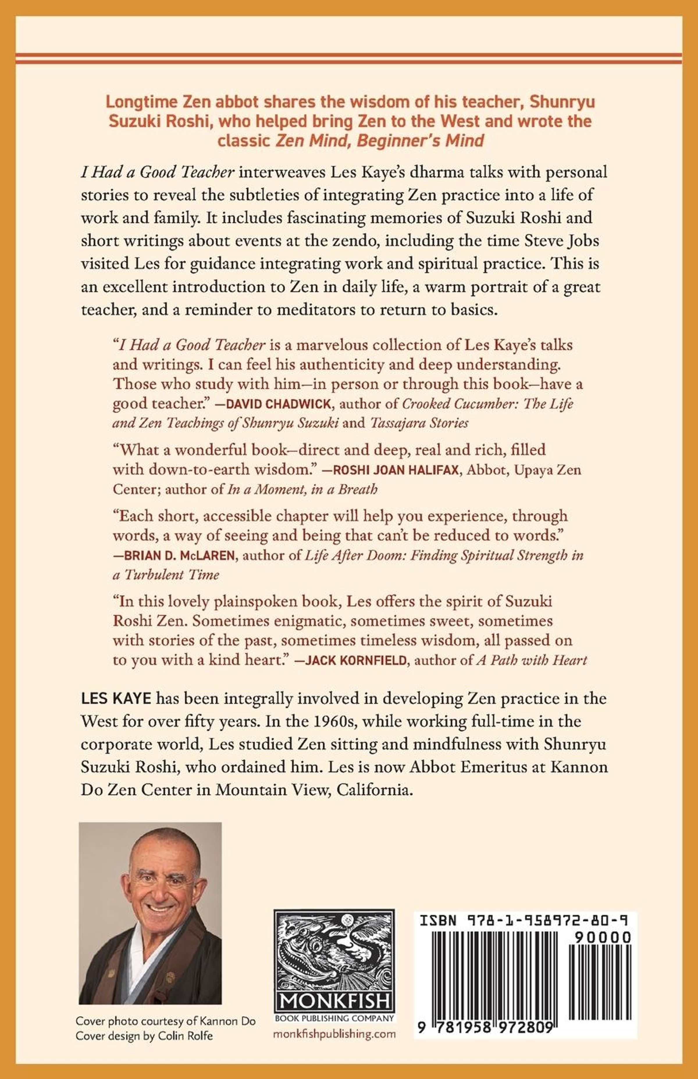 "Longtime Zen abbot shares the wisdom of his teacher, who brought Zen to the West and wrote the classic Zen Mind, Beginner's Mind. Les Kaye studied Zen with Shunryu Suzuki Roshi in the 1960s and is now abbot emeritus of Kannon Do Zendo in Mountain View, California (where Norman Fischer is acting abbot). Born and raised in Manhattan, Kaye moved to what is now Silicon Valley in his twenties to work for IBM. While working full-time in the corporate world, he practiced Zen sitting and mindfulness, became an ordained disciple of Suzuki Roshi and the head of practice at what became Kannon Do. I Had a Good Teacher interweaves dharma talks with personal stories to reveal the subtleties of integrating Zen practice into a life of work and family. It includes fascinating memories of Suzuki Roshi and short writings about events at the zendo, including the time Steve Jobs visited Les for guidance integrating work and spiritual practice. Compiled and edited by Les's disciple Giuseppe Prisco, an Italian tech entrepreneur and Zen priest, I Had a Good Teacher is an introduction to Zen in daily life, a warm portrait of a great Zen teacher, and a reminder to meditators to return to basics, to keep their meditation real, and to practice awareness all day long"--