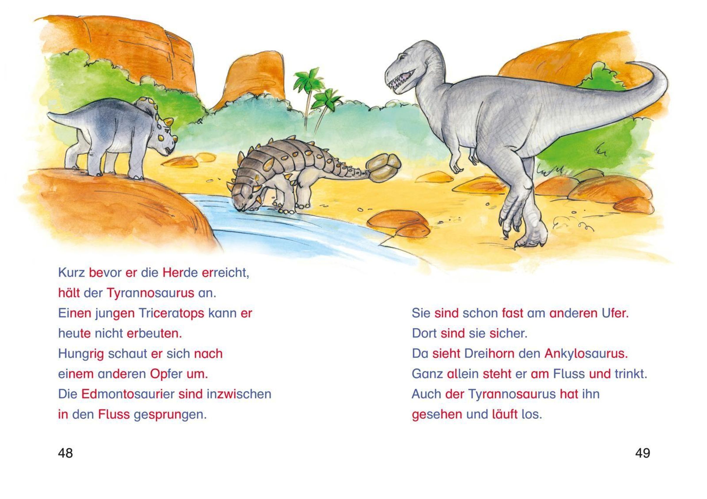 Drei fröhliche Dinosaurier-Geschichten bieten ein ideales Extra-Training für Erstleser*innen. Alle Wörter sind in farbigen Silben markiert. Diese kurzen Buchstabengruppen können Leseanfängerinnen und Leseanfänger schneller erfassen als das ganze Wort. Zusätzlich gibt es lustige Rätselfragen zum Überprüfen des Leseverständnisses.