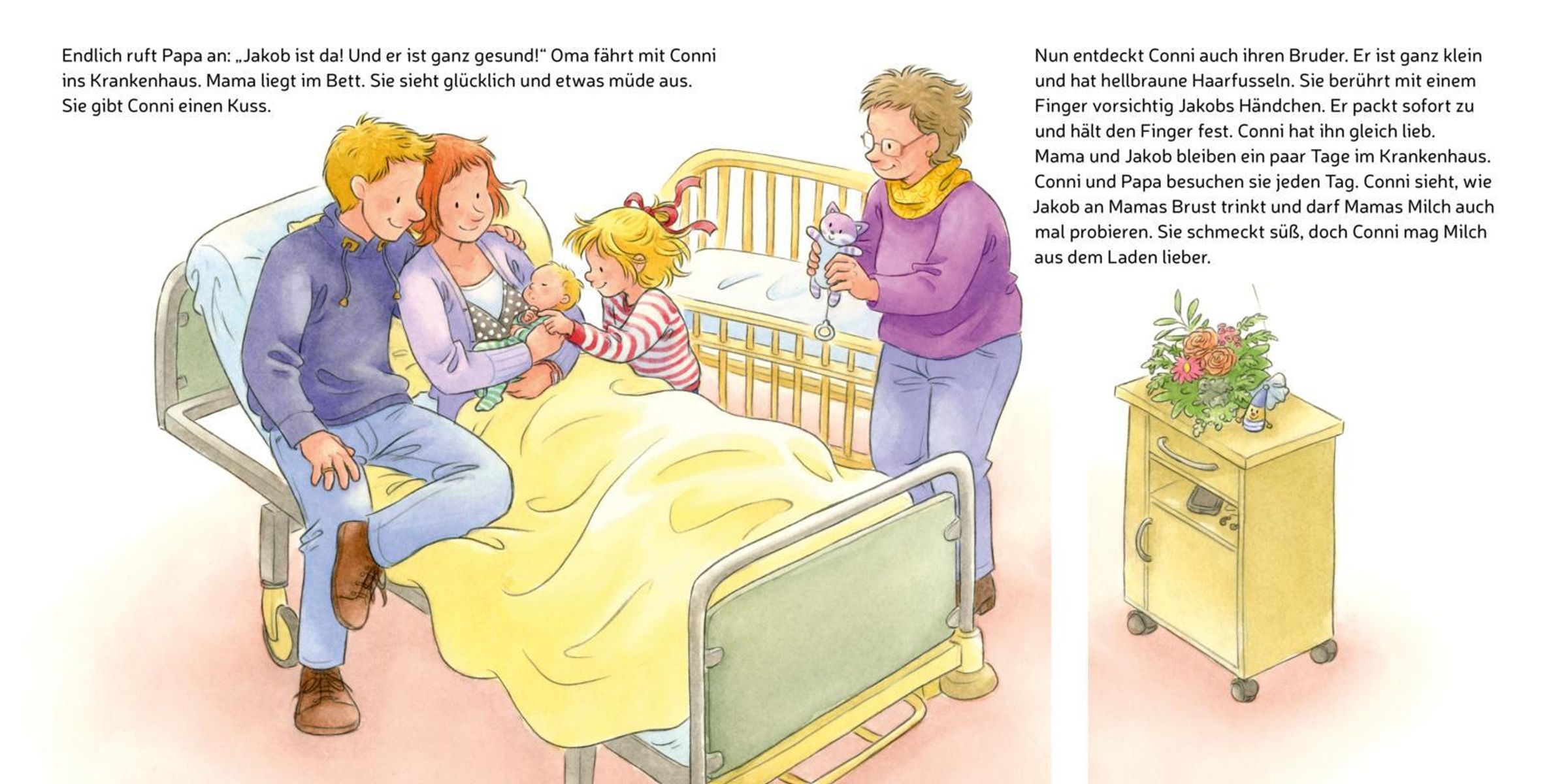 Ihre Eltern begleiten Conni liebevoll durch die Wochenbettzeit und erklären ihr, dass sie sie immer liebhaben werden. So nehmen Papa und Mama Conni Ängste und Sorgen, stärken ihr Selbstbewusstsein. So kann das Baby kommen!
