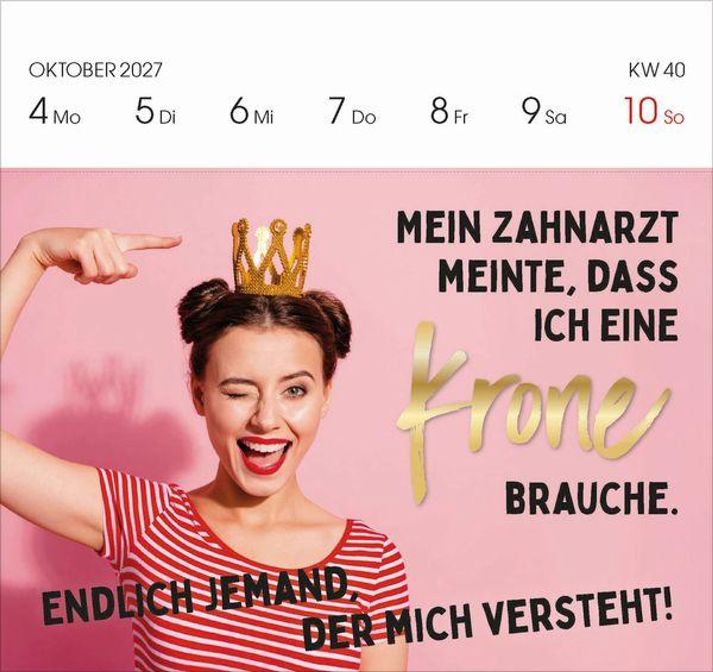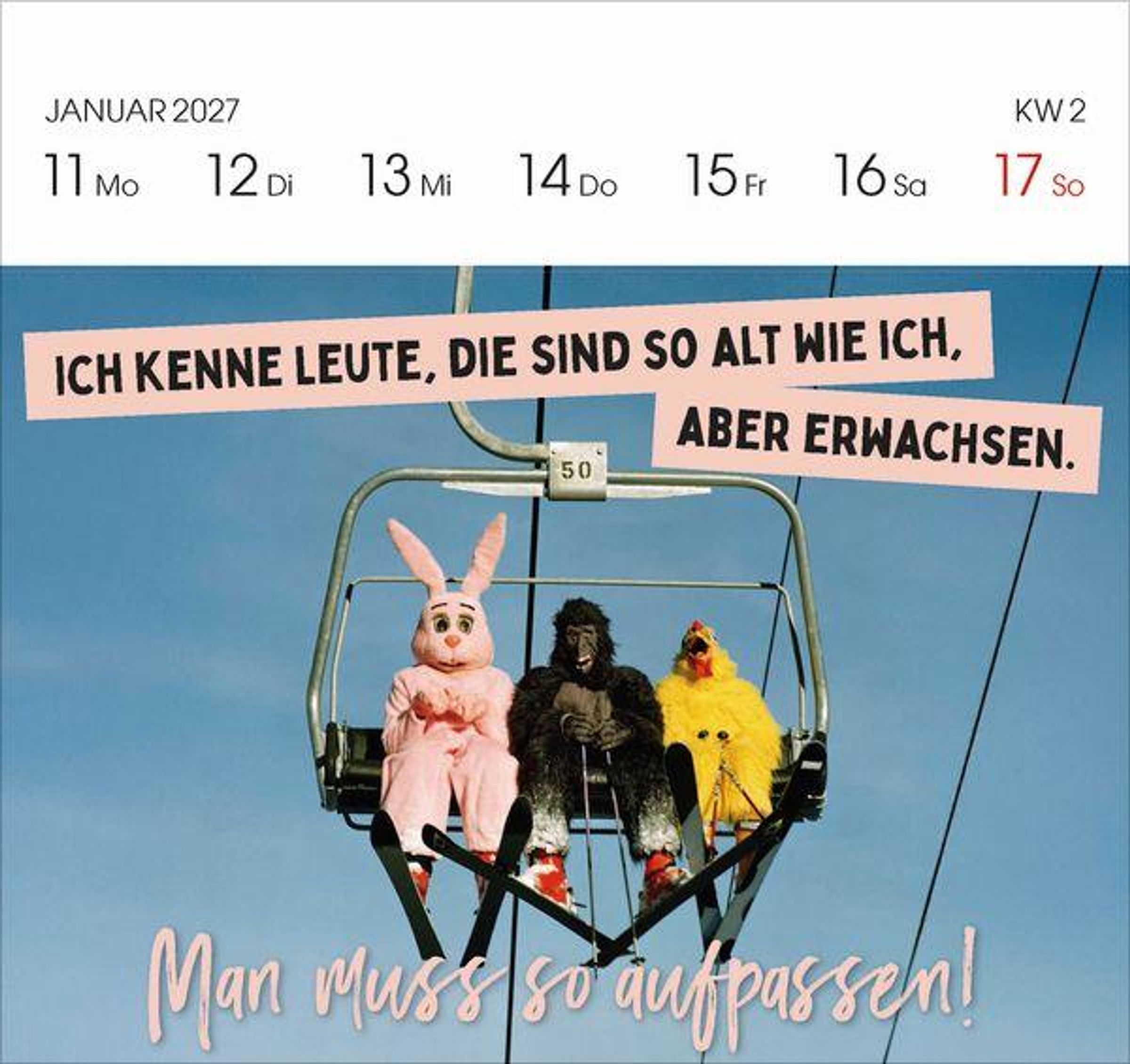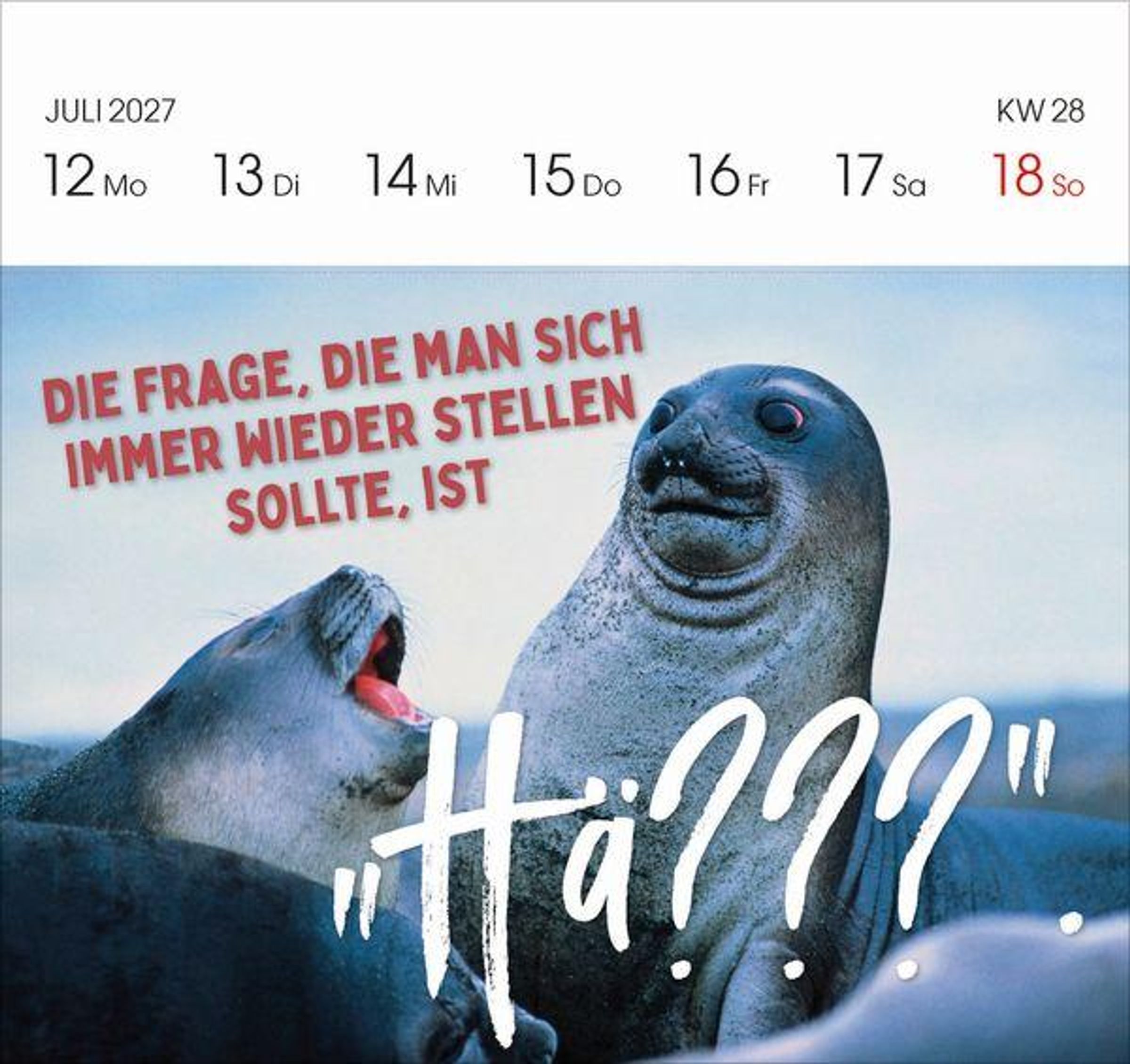 - Aufstellbarer Foto-Postkartenkalender. Jede Woche eine neue lustige Foto-Spruch-Kombination. Hochwertiger Wochenkalender für den Schreibtisch