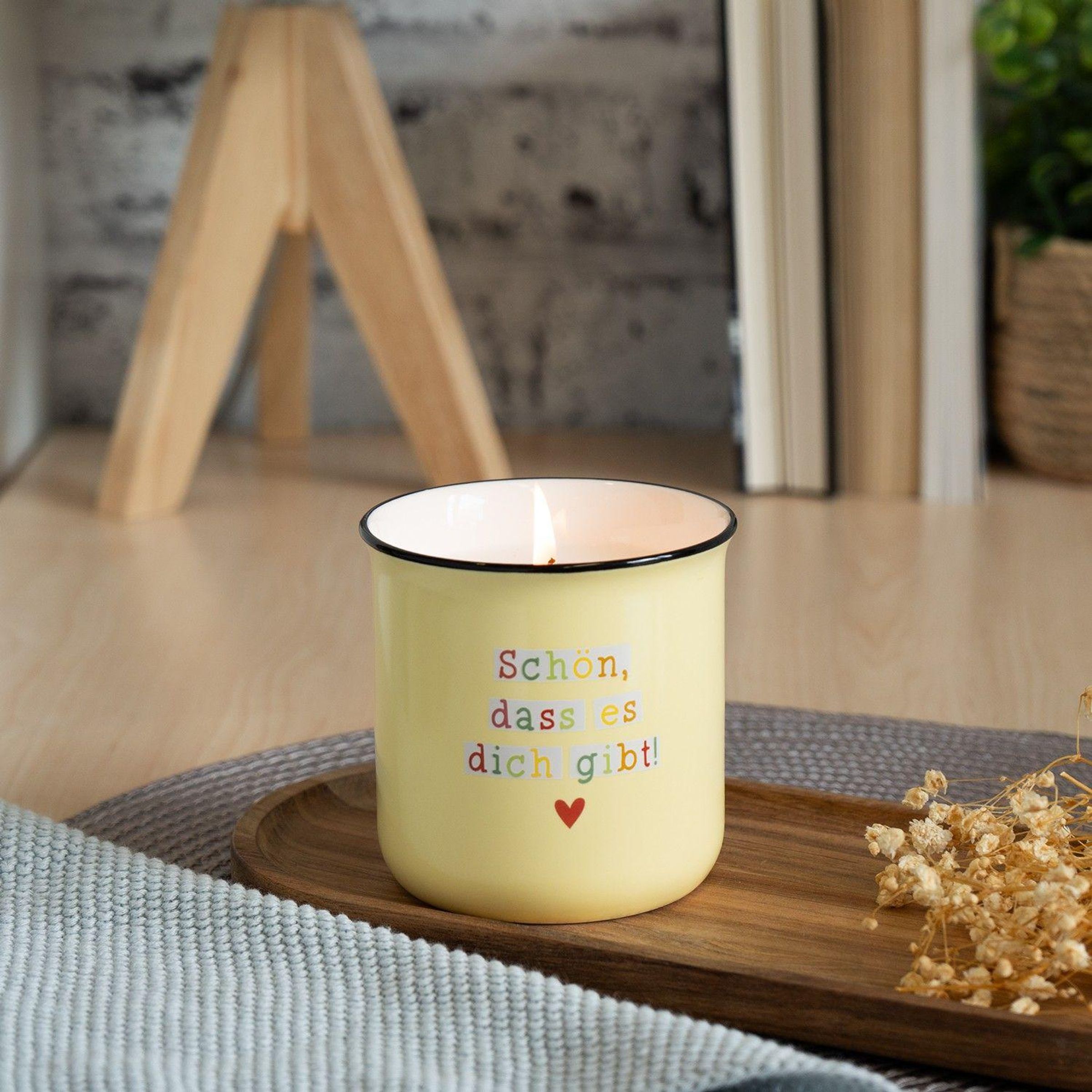 Lieblingskerze in Emailleoptik Motiv "Schön, dass es dich gibt" (Sonstige Artikel)
