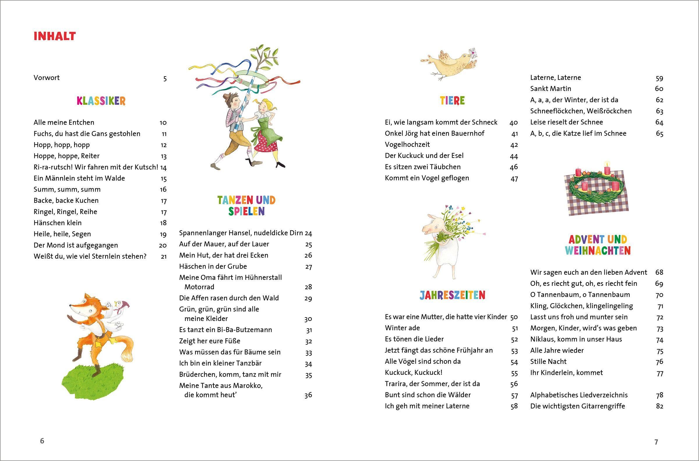 Singen bereichert den Kita-Alltag: Es schafft Nähe, gibt Struktur und stärkt Sprache, Gemeinschaft und Selbstvertrauen. Dieses Buch bündelt Klassiker, Bewegungs-, Tier-, Jahreszeiten- sowie Advents- und Weihnachtslieder - übersichtlich sortiert und ergänzt durch die wichtigsten Gitarrengriffe. Eine praktische Sammlung für pädagogische Fachkräfte, die Musik im Alltag gezielt und mit Freude einsetzen möchten.