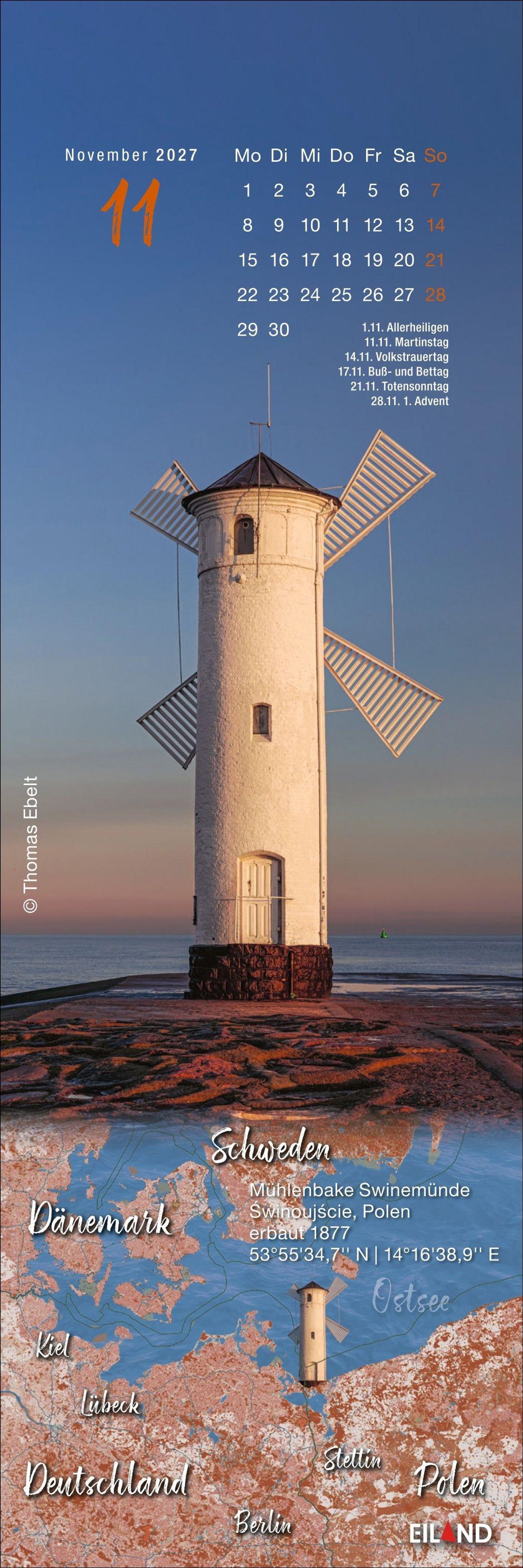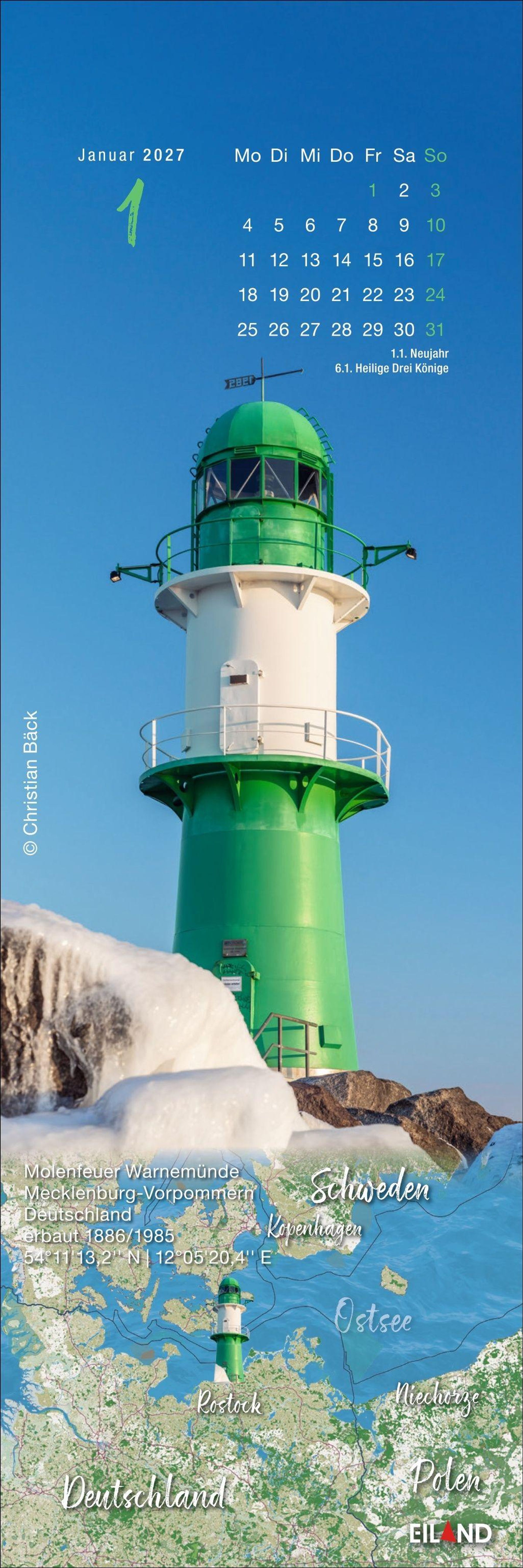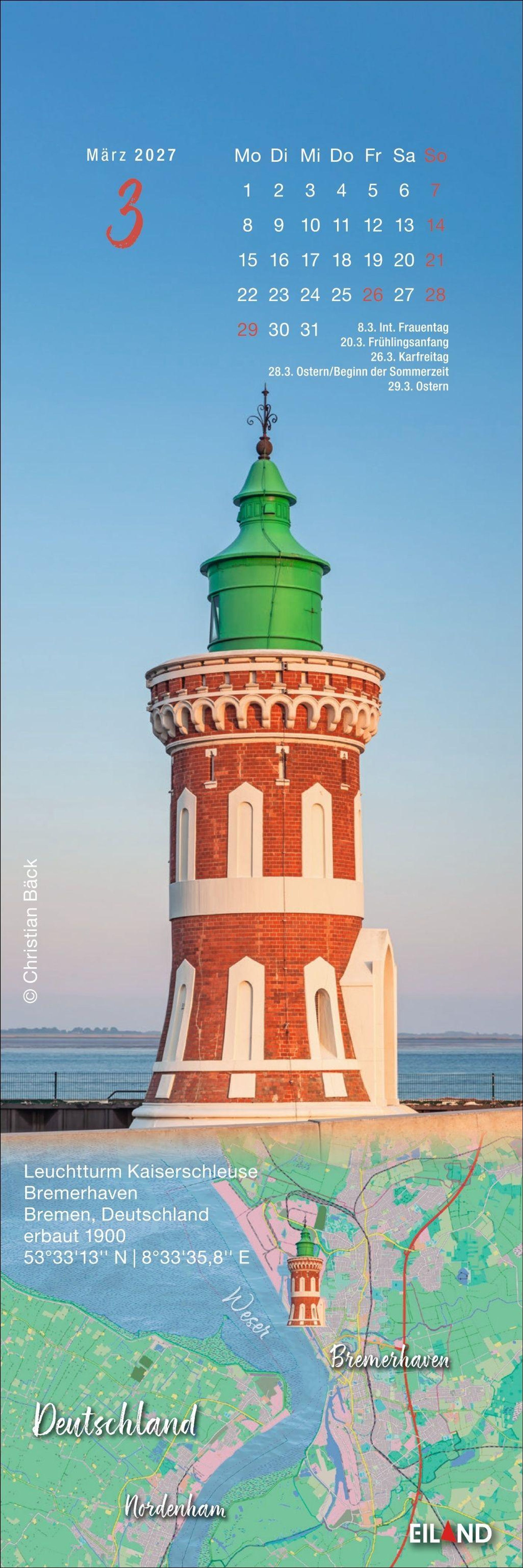 - Eiland-Leuchtturm-Kalender mit 12 Farbfotos und Satellitenkarten. Kleiner Kalender 2027 mit Lesezeichen zum Heraustrennen.