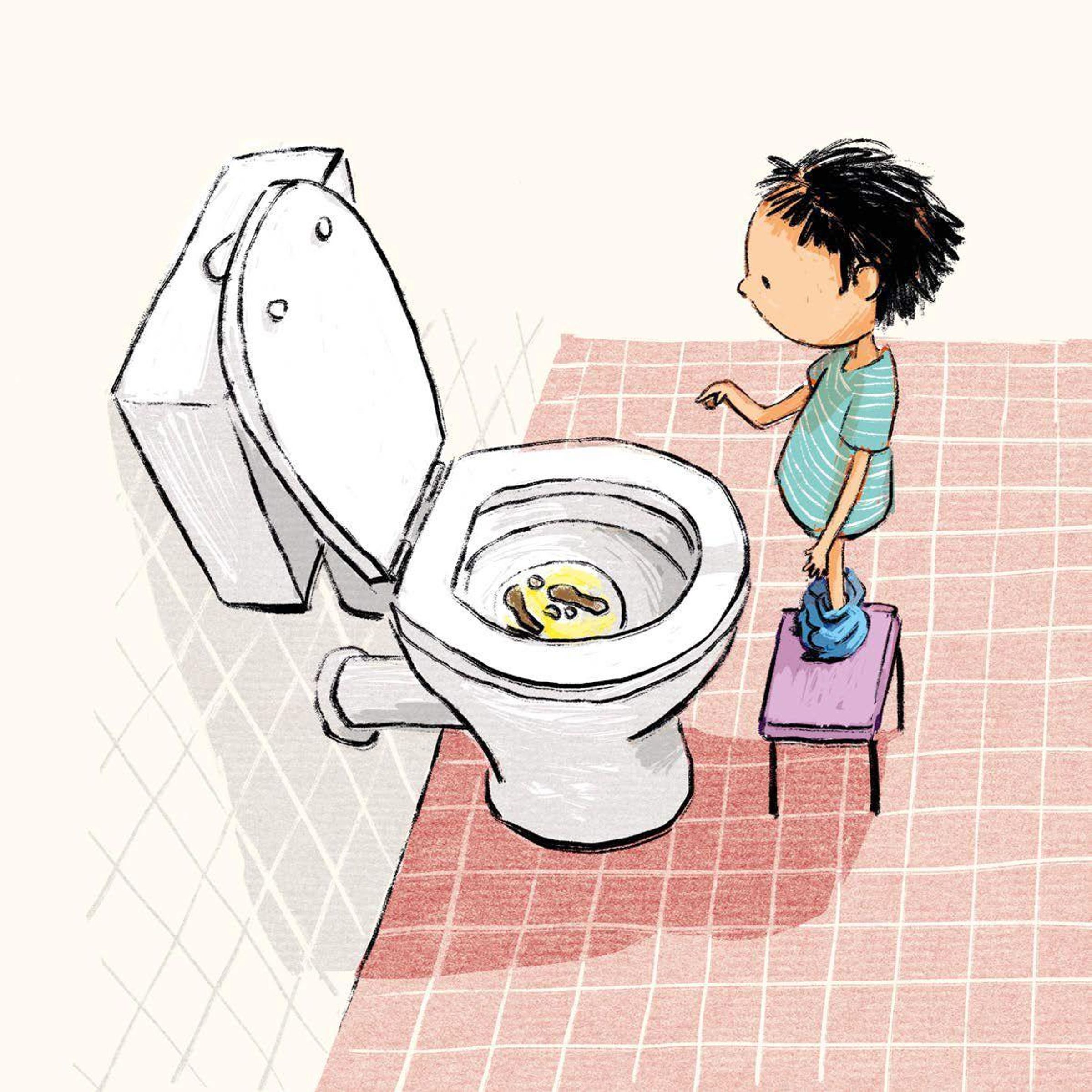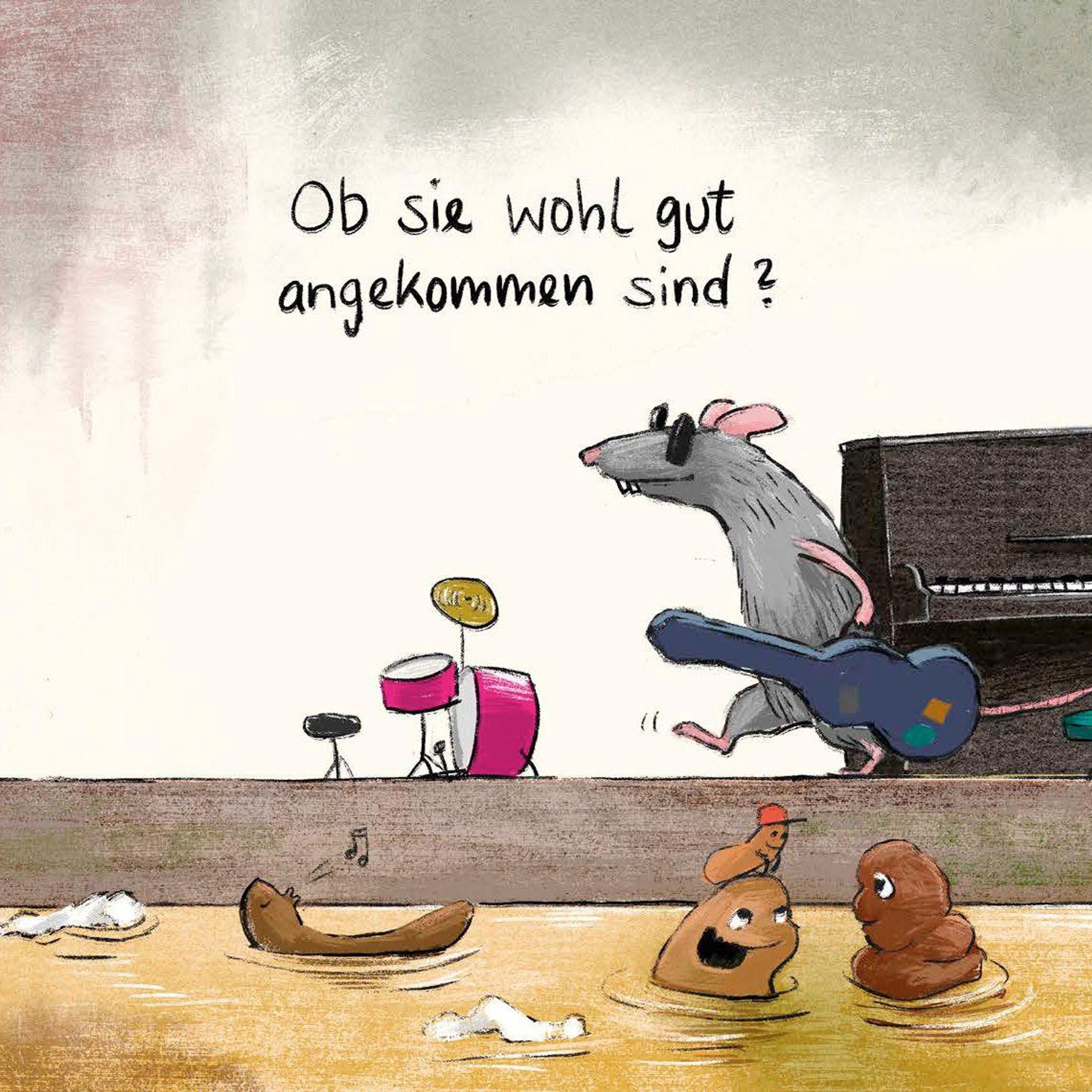 Erwachsene in ihrer Naivität meinen, so ein Klogang endete mit Abputzen, Spu¿le, Klosäubern und Händewaschen. In Wirklichkeit ist es aber viel spannender: Eine Kackwurst ist selten allein, in unserem Fall sind es drei kleine und zwei große - eine ganze Familie, und wenn sie hinuntergespu¿lt werden, stoßen sie unten im Kanal auf viele andere Kackwu¿rste. Was noch von der Klobu¿rste runtergeht, macht unsere Kackwu¿rste noch ein bisschen schicker, und wenn die Kackwurstparty im Kanal beginnt, kom- men noch die ganzen Seifenblasen vom Händewaschen dazu. Und klar ... damit die Kackwu¿rste ihren Spaß haben, mu¿ssen wir ordentlich Klo und Hände säubern.