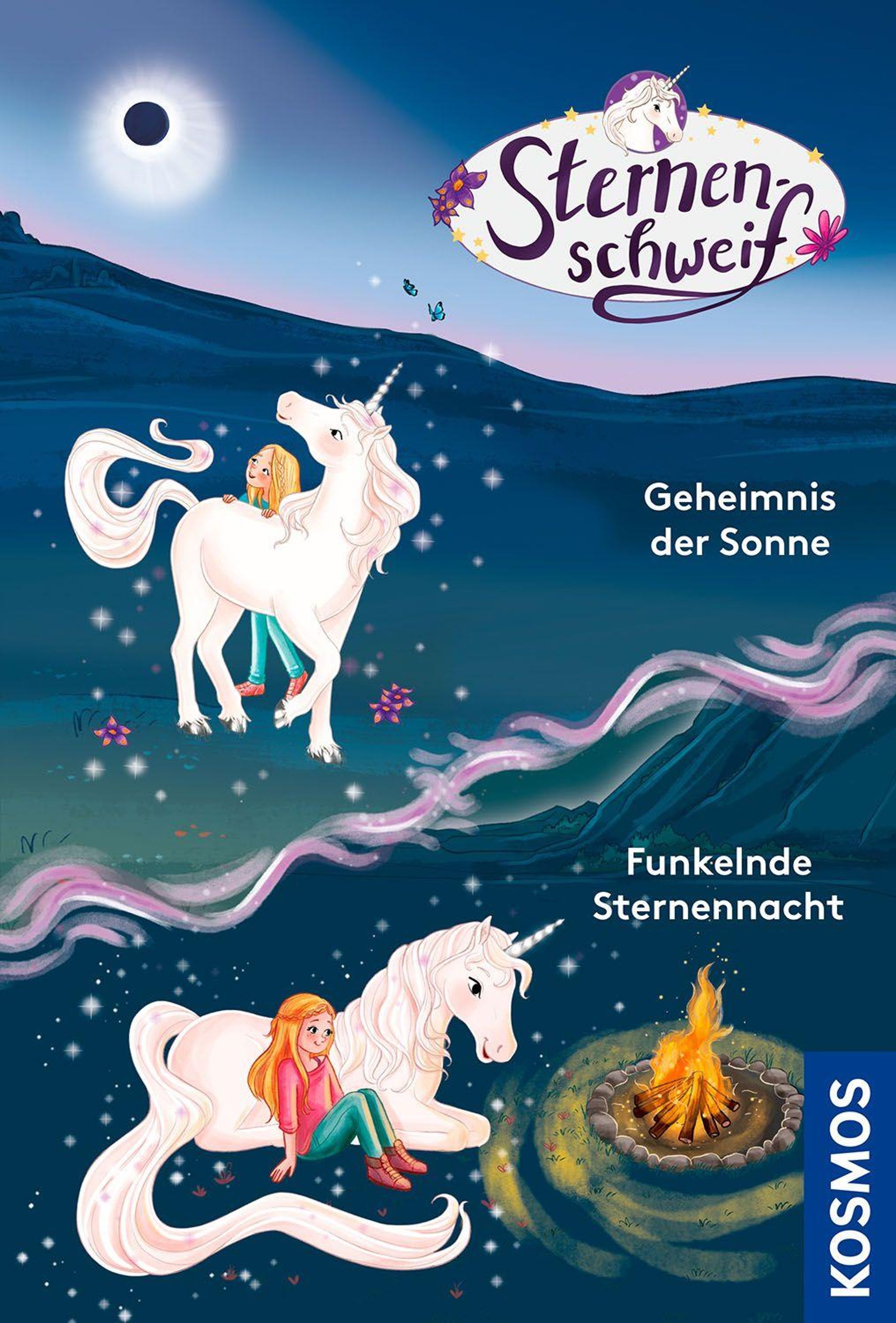 Doppelte Magie und doppelter Lesespaß: Zwei Sternenschweif-Geschichten in einem Band. Auf dem Reiterhof Apfelhain wird das Frühlingsfest vorbereitet. Laura und Sternenschweif freuen sich auf das große Lagerfeuer. Auch Emma, eine neue Freundin, möchte mit ihrem Einhorn Goldstern dabei sein. Doch plötzlich kann Goldstern sich nicht mehr verwandeln. Wie konnte seine Magie verloren gehen? In der geheimnisvollen Frühlingsnacht machen sich die Freunde auf die Suche nach einer Lösung. In der zweiten Geschichte steht eine seltene Sonnenfinsternis bevor. Laura und Sternenschweif möchten dieses besondere Ereignis unbedingt erleben. Doch als sich der Himmel verdunkelt, geraten einige Pferde in Panik und brechen aus ihrer Koppel aus. Gelingt es ihnen, die Tiere rechtzeitig zu beruhigen? Zwei magische Einhorn-Abenteuer voller Magie, Freundschaft und Mut - leicht lesbar in Fibelschrift und liebevoll illustriert für Kinder ab 7 Jahren.
