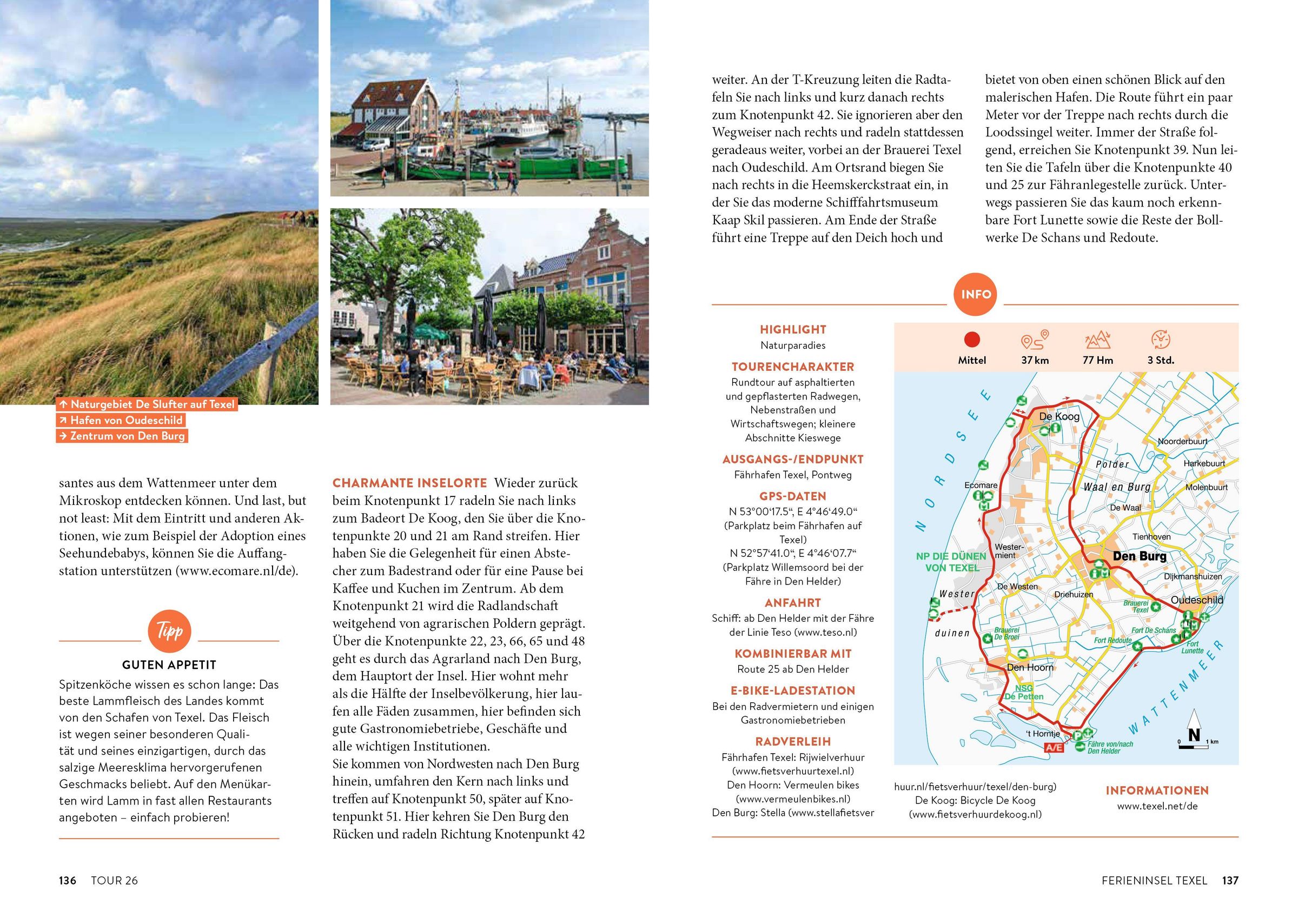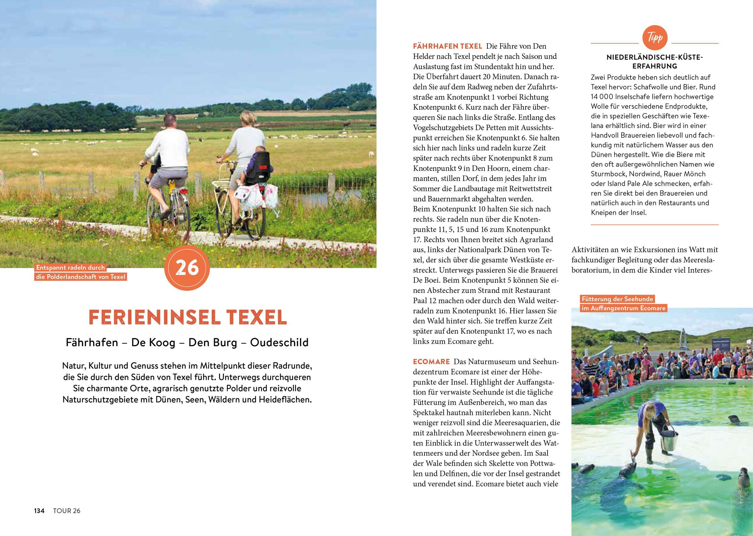 Die schönsten Fahrradtouren der Niederlande zwischen Domburg und Den Helder Was macht die niederländische Küste für Radfahrer reizvoll? Zunächst natürlich die niederen Lande: Fast immer geht es flach dahin, lediglich der Nordseewind ist manchmal lästig, wenn er einem entgegenbläst. Reizvoll in der Region ist jedoch noch viel mehr: etwa die Künstlerkolonie Domburg, die Tulpenfelder in Südholland, die Käsestadt Alkmaar in Nordholland oder die Watteninseln von Texel bis Ameland. 30 Radtouren zum Erfahren und Erleben, inklusive Abstechern auf die niederländischen Wattenmeerinseln.