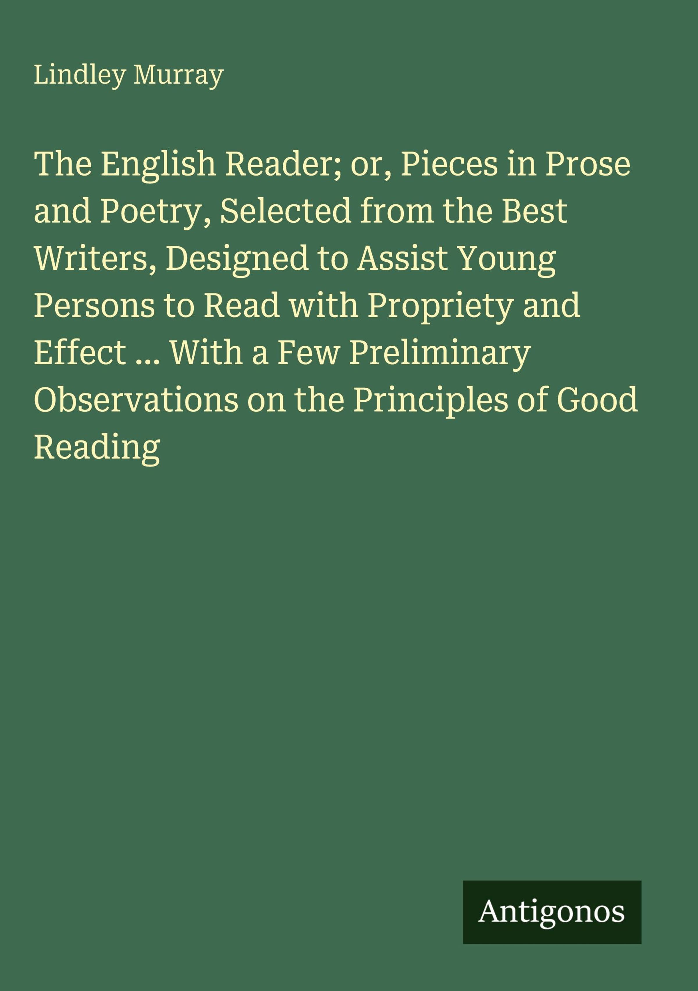 The English Reader; or, Pieces in Prose and Poetry, Selected from the Best Writers, Designed to Assist Young Persons to Read with Propriety and Effect ... With a Few Preliminary Observations on the Principles of Good Reading