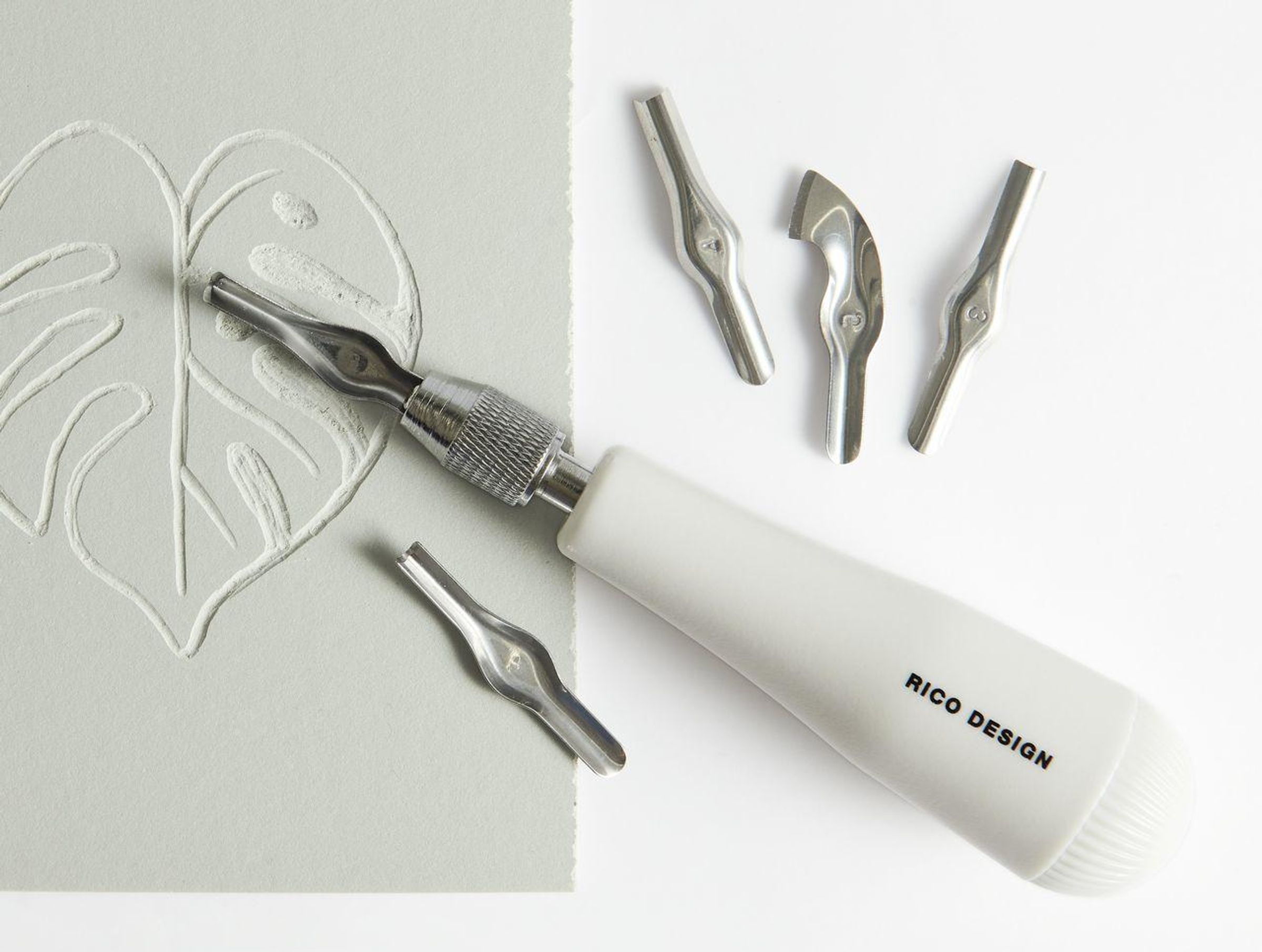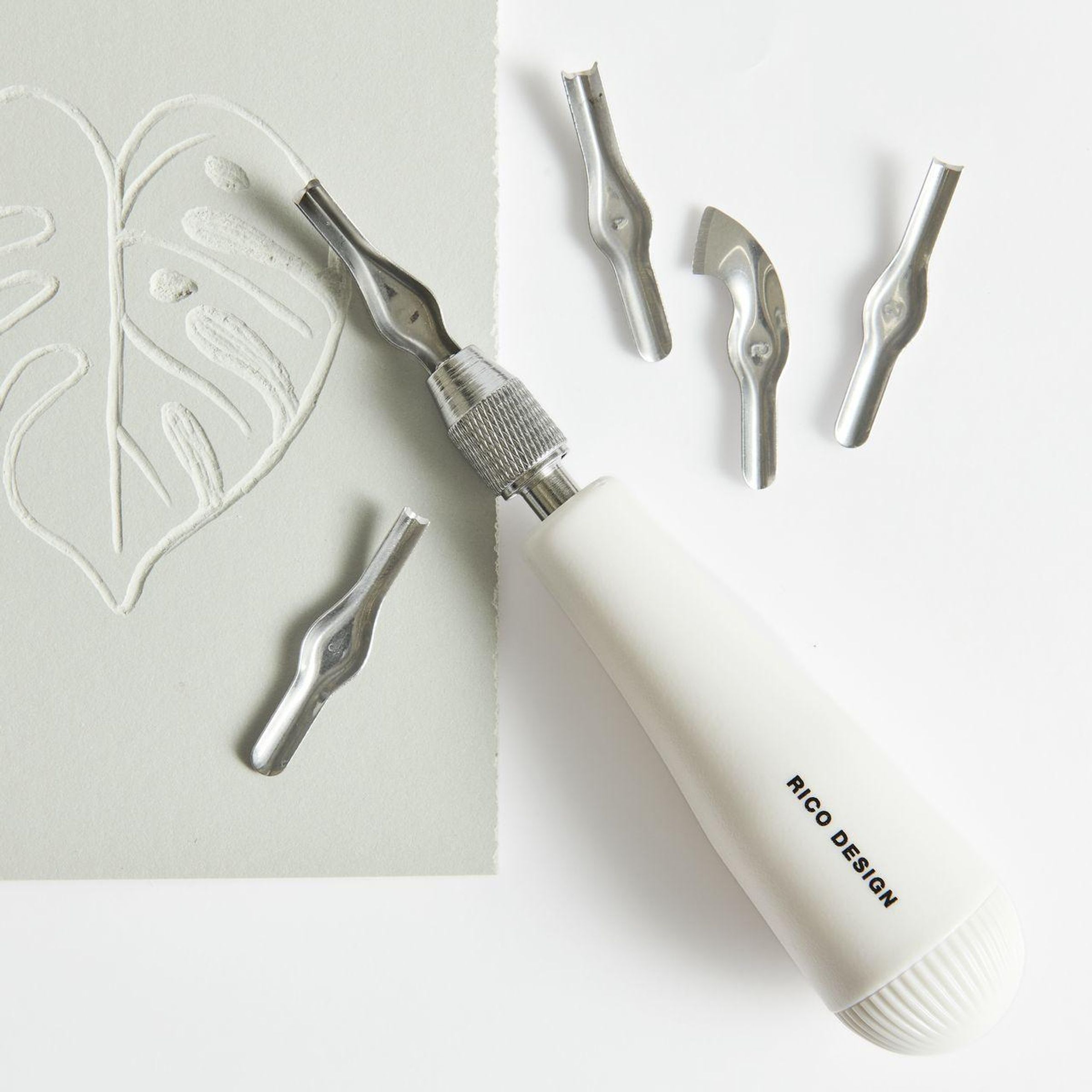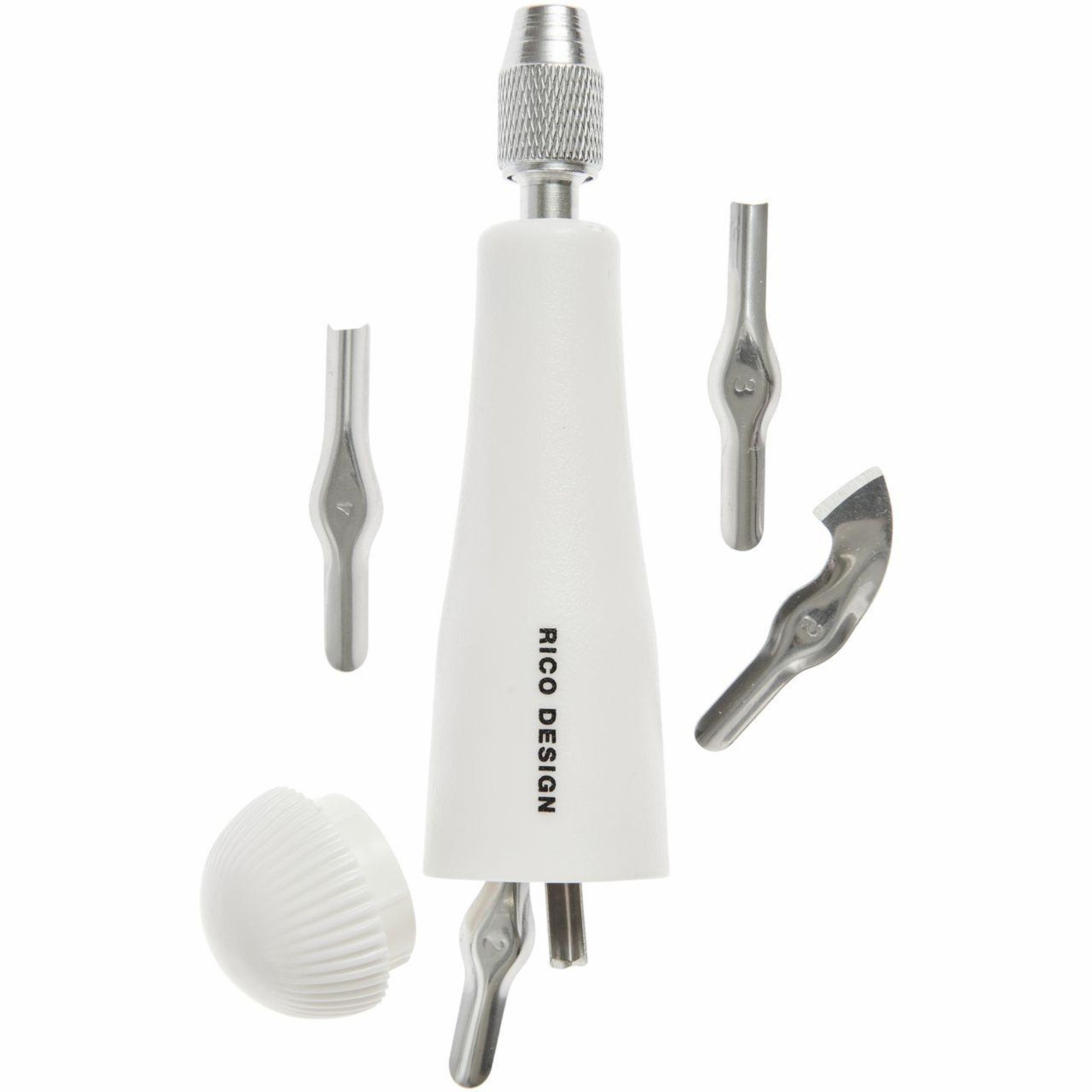 - Inhalt: 1 Handgriff und 5 Klingen (Geißfüß, U-Form, Hohleisen 3 mm, Hohleisen 4 mm und 1 Konturenmesser