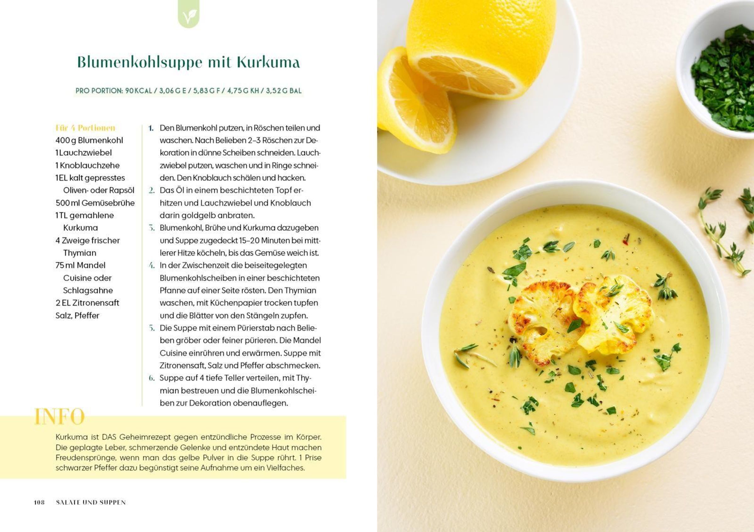 - Wärmende Suppen wie Paprika-Tomaten-Suppe, Blumenkohlsuppe oder Lauch-Topinambur-Suppe