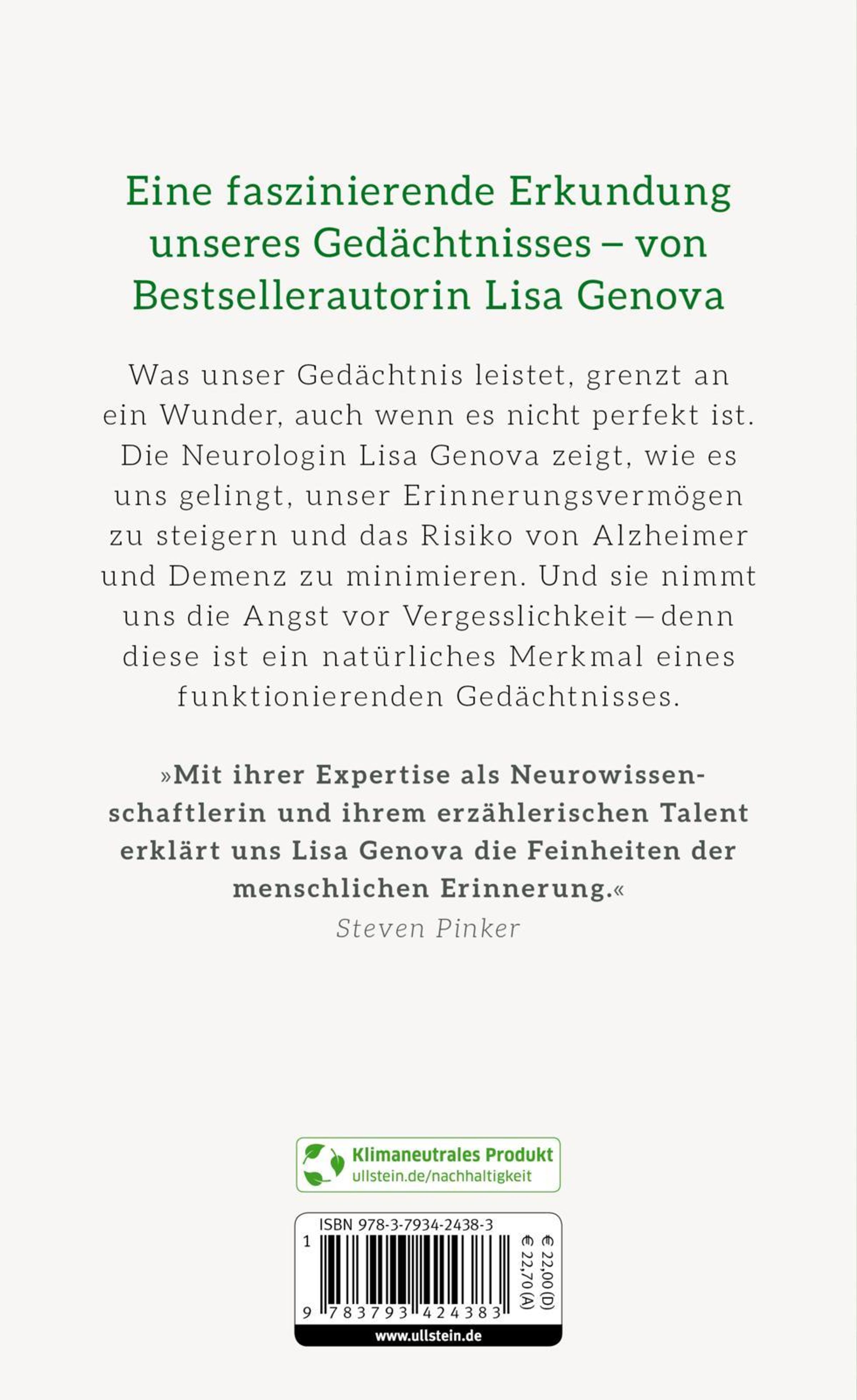 Was unser Gedächtnis leistet, grenzt an ein Wunder, auch wenn es nicht perfekt ist. Die Neurologin Lisa Genova zeigt, wie es uns gelingt, unser Erinnerungsvermögen zu steigern und das Risiko von Alzheimer und Demenz zu minimieren. Und sie nimmt uns die Angst vor Vergesslichkeit - denn diese ist ein natürliches Merkmal eines funktionierenden Gedächtnisses.