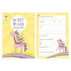 12 Einladungskarten zum Kindergeburtstag zum Ausfüllen Die liebevoll von Hand gestalteten Geburtstagseinladungen mit Einhornmotiv sind auf der Rückseite mit praktischen Feldern zum Ausfüllen bedruckt. Alle wichtigen Informationen, wie: Empfänger, Ort, Uhrzeit, Kontaktdaten (Telefonnummer und E-Mail-Adresse), wichtige Infos und das Geburtstagskind sind enthalten. Die Einladungskarten können so schnell ausgefüllt und personalisiert werden.